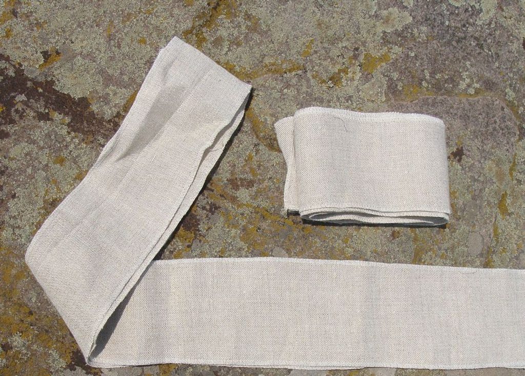 Lněné ovinky, které slouží k ovázání a tím i větší ochraně a fixaci lýtka a kotníku. Délka cca 230 cm. Cena je uvedena za pár.