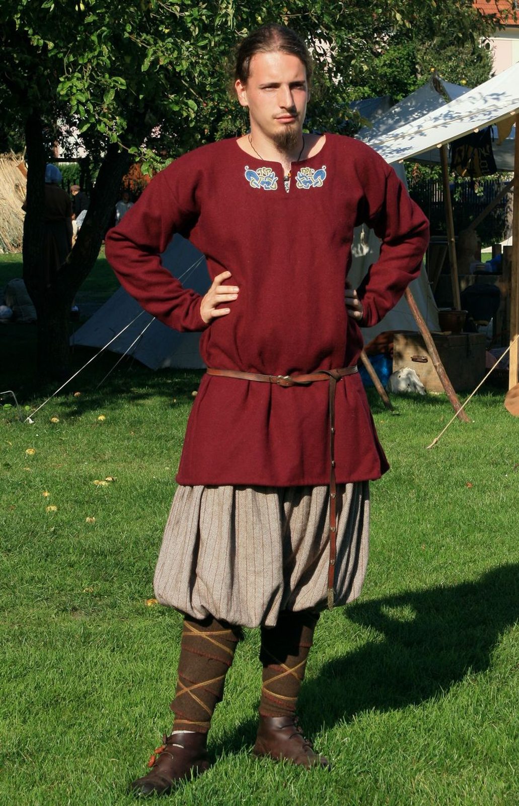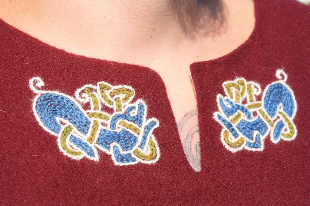 Vlněná vikinská tunika zdobená vyšívkou. Rozparek u výstřihu je možný sepnout ozdobnou sponou. Všechny viditelné švy jsou šité ručně.