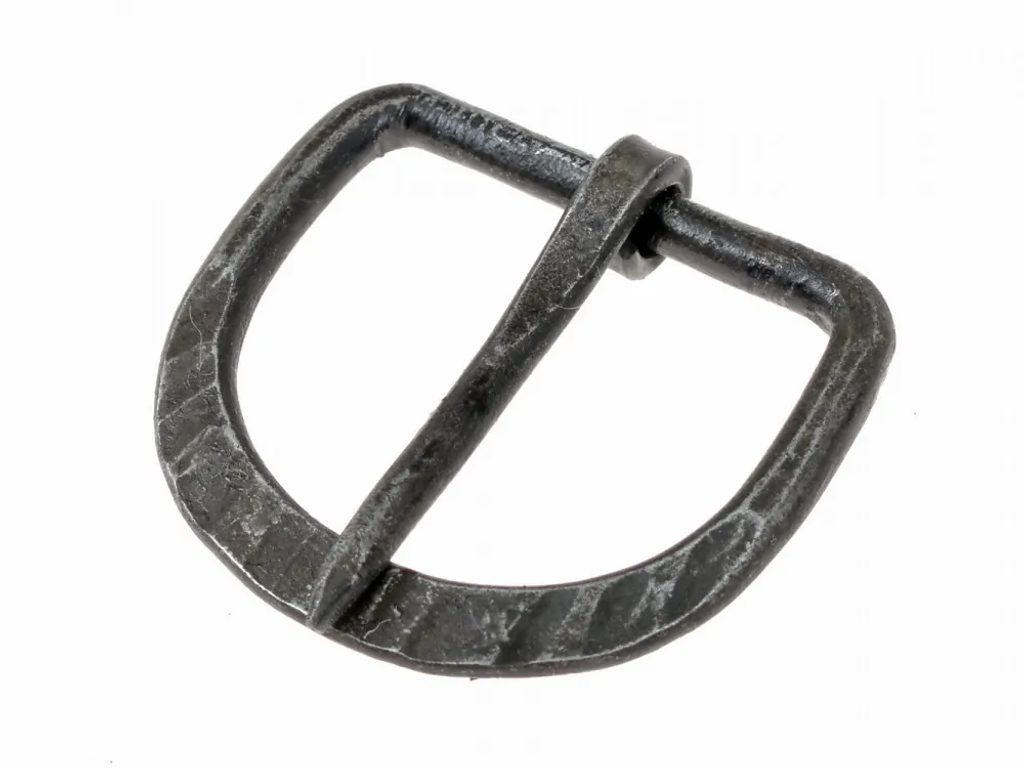 Pro zdůraznění středověkého vzhledu je viditelný povrch této kované železné přezky zdoben dekorativními stopami po kladivu, které přezce dodávají rustikální charakter.