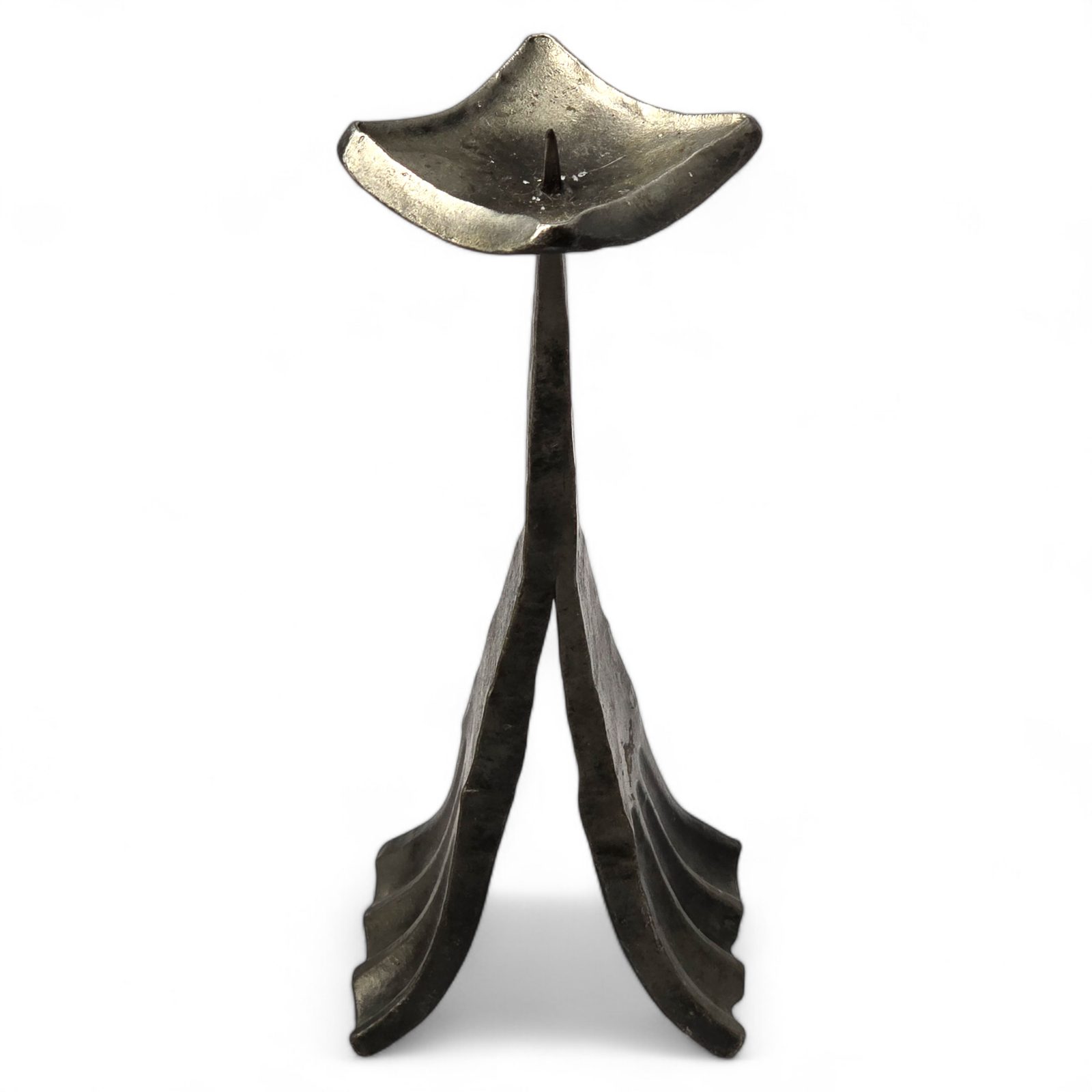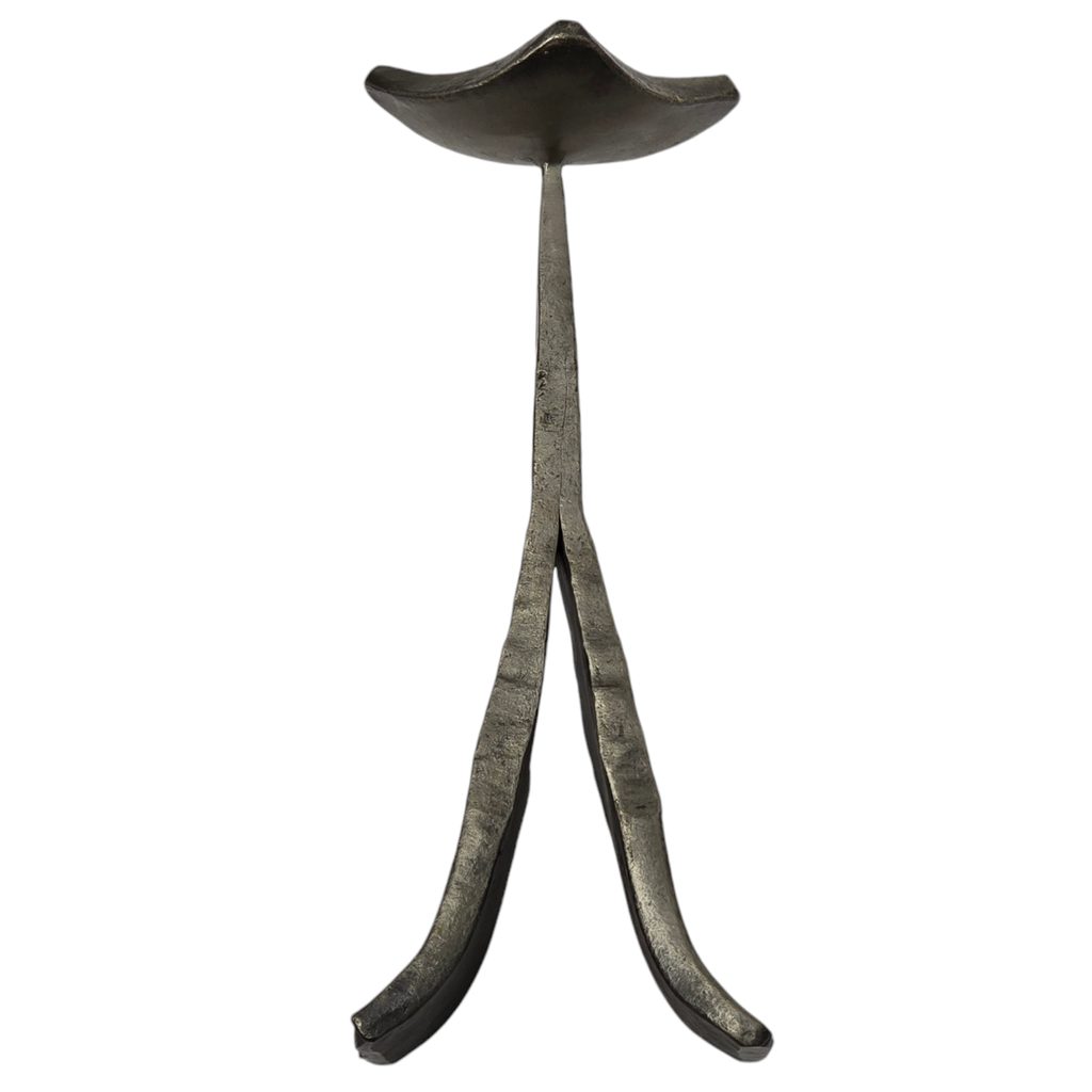 Kovaný svícen na větší svíčku. Výška: 19 cm.