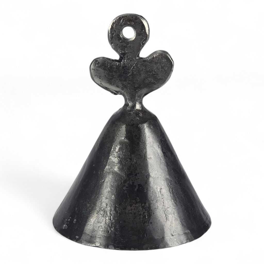 Ruční kovaný zvonek vyrobený z oceli s motivem anděla. Jednoduché a pevné provedení doplňuje dekorativní silueta anděla, která tvoří horní část zvonku a zároveň slouží jako držadlo.