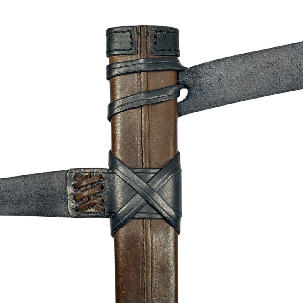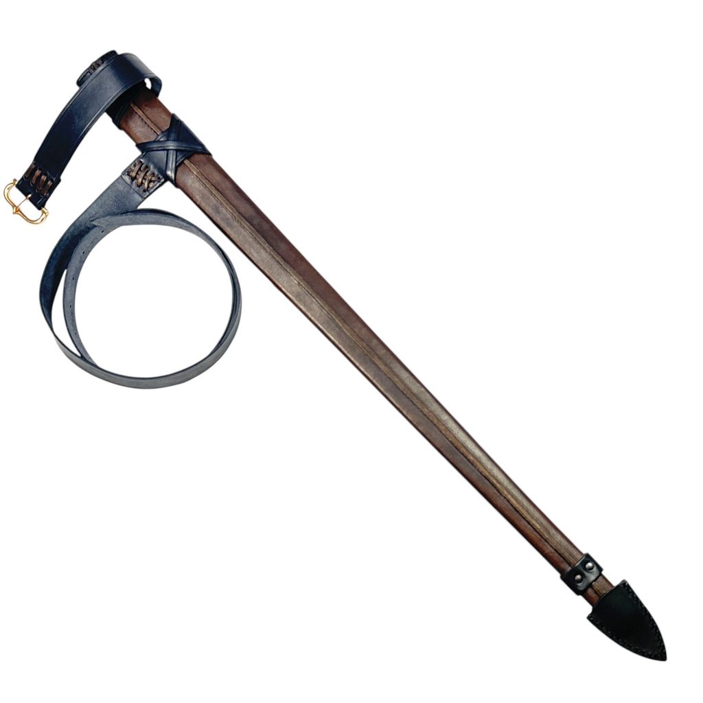Tato ručně zpracovaná středověká pochva je vyrobena z kvalitní hovězí kůže a je navržena tak, aby věrně odpovídala historickým předlohám. Svým tvarem se hodí například pro Rackův meč či jiné meče podobné délky a profilu čepele.