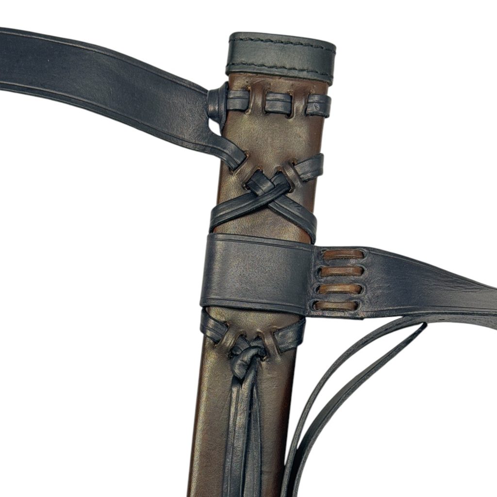 Kožené opletení je vyráběné. Součástí je také kvalitní opasek s bronzovou sponou, který umožňuje pohodlné nošení u pasu.