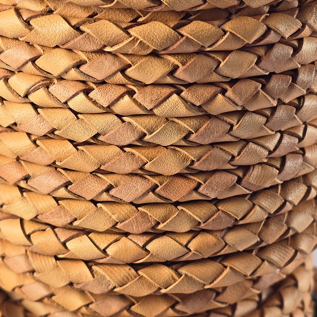 Pevná pletená kožená šňůra typu bolo, vyrobená z kvalitních plochých kožených řemínků spletených do kulatého tvaru. Díky průměru 5 mm je univerzální a vhodná pro širokou škálu kreativních i řemeslných projektů. Skvěle se hodí k výrobě šperků, zejména náhrdelníků, přívěsků, náramků, bolo kravat, ale také k doplňkovým prvkům pro western a historické kostýmy, bushcraft vybavení či stylové uzávěry a dekorace.