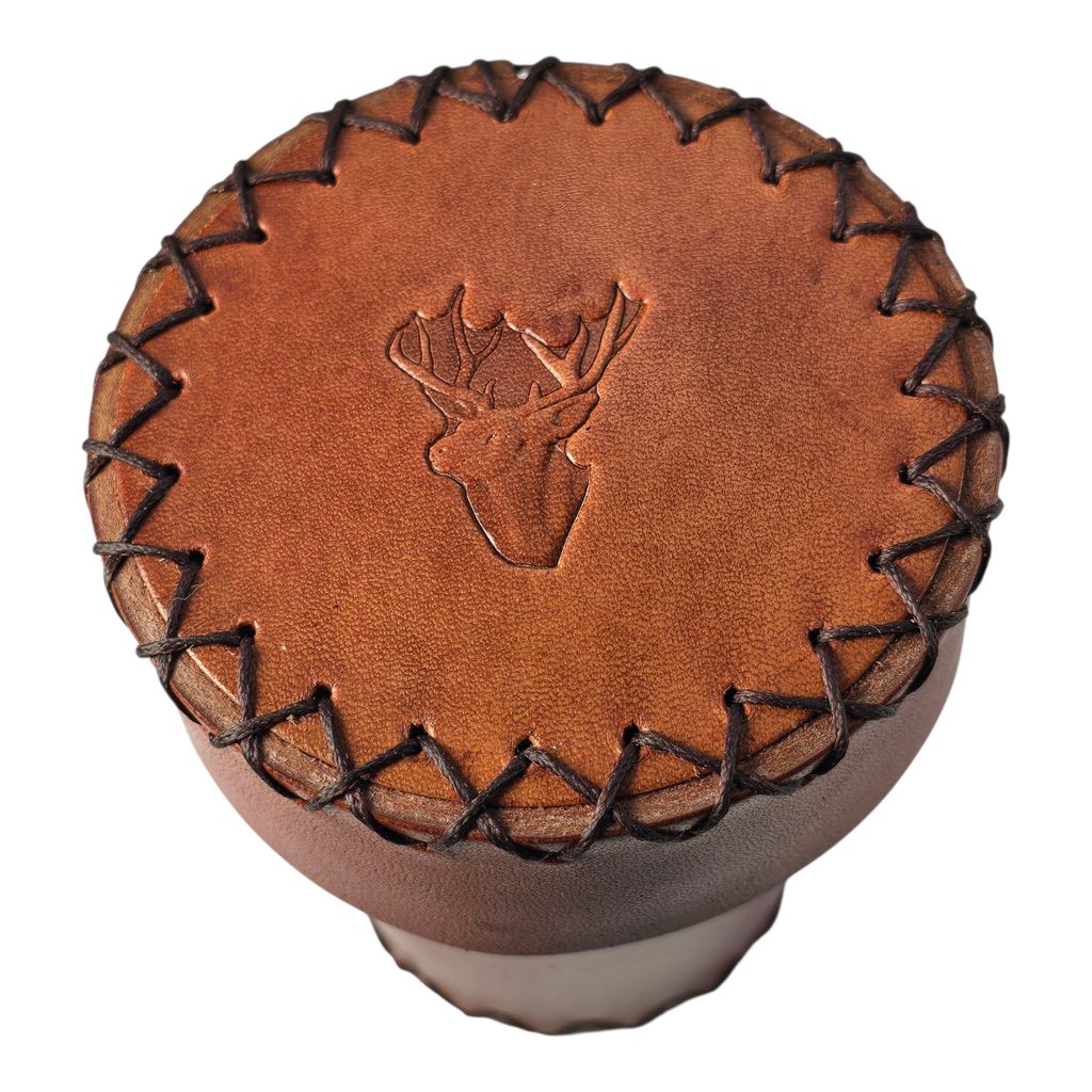 Ručně vyrobený kelímek z hovězí kůže, skvělý doplněk pro hry s kostkami. Ke kalíšku si můžete vybrat některé z mnoha nabízených hracích kostek - nabízíme kované kostky, římské hrací kostky z kosti a podobně.
