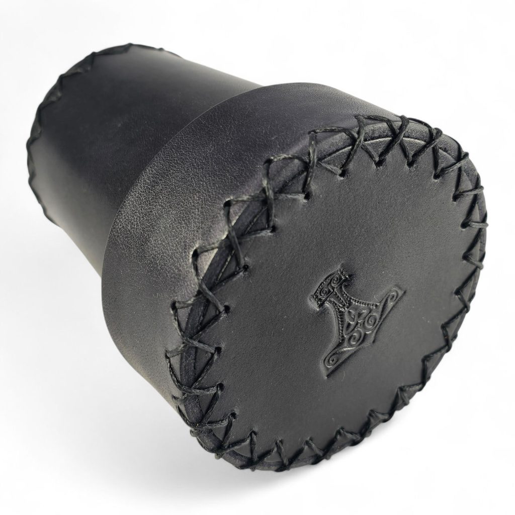 Kožený kalíšek pro hrací kostky s víkem - Thorovo kladivo
