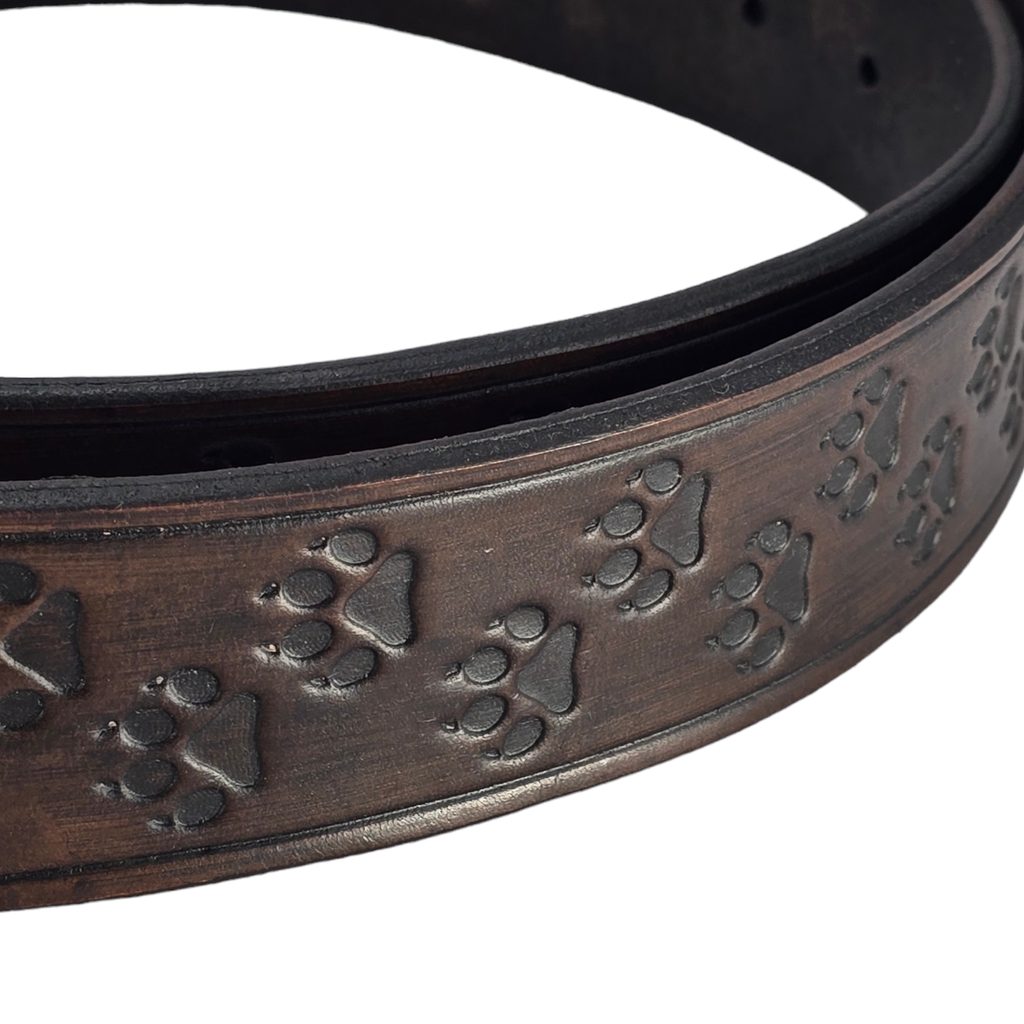 Ručně vyráběný kožený opasek s vytlačenými motivy. Opasek je vyroben zkušeným sedlářem v České republice o šíři 4 cm a je doplněn ručně kovanou železnou sponou. Síla kůže je 4 mm, což z opasku činí módní a praktický doplněk, který Vám bude sloužit dlouhá léta.