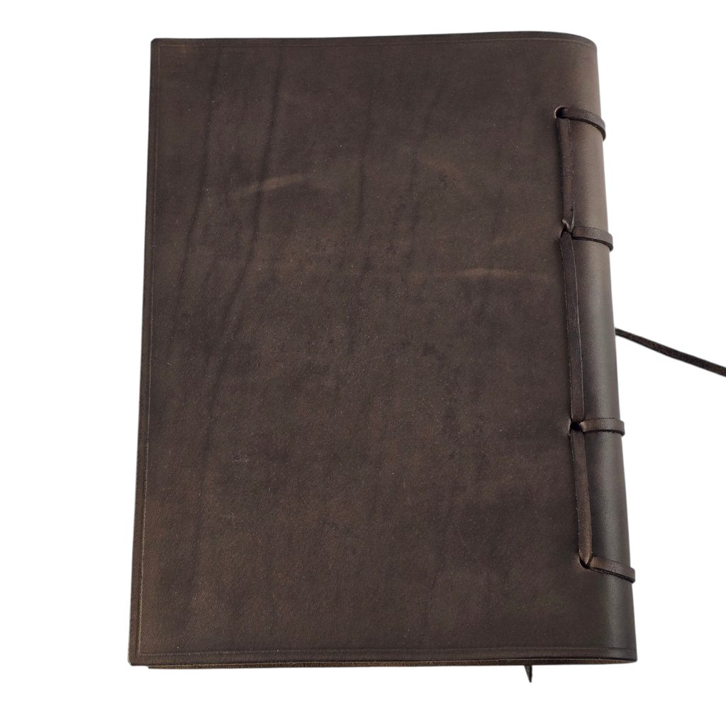 Zápisník s ručně vyráběným zdobeným koženým přebalem.