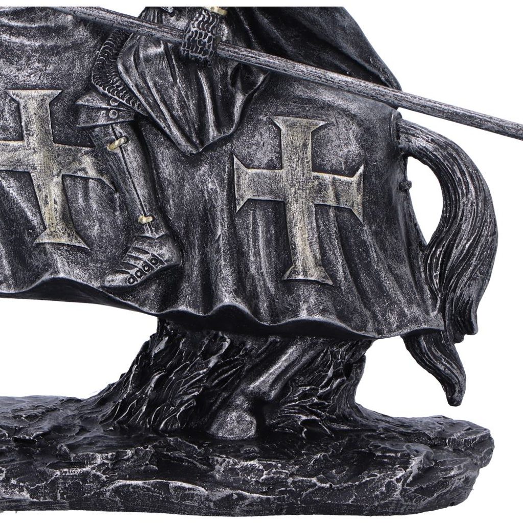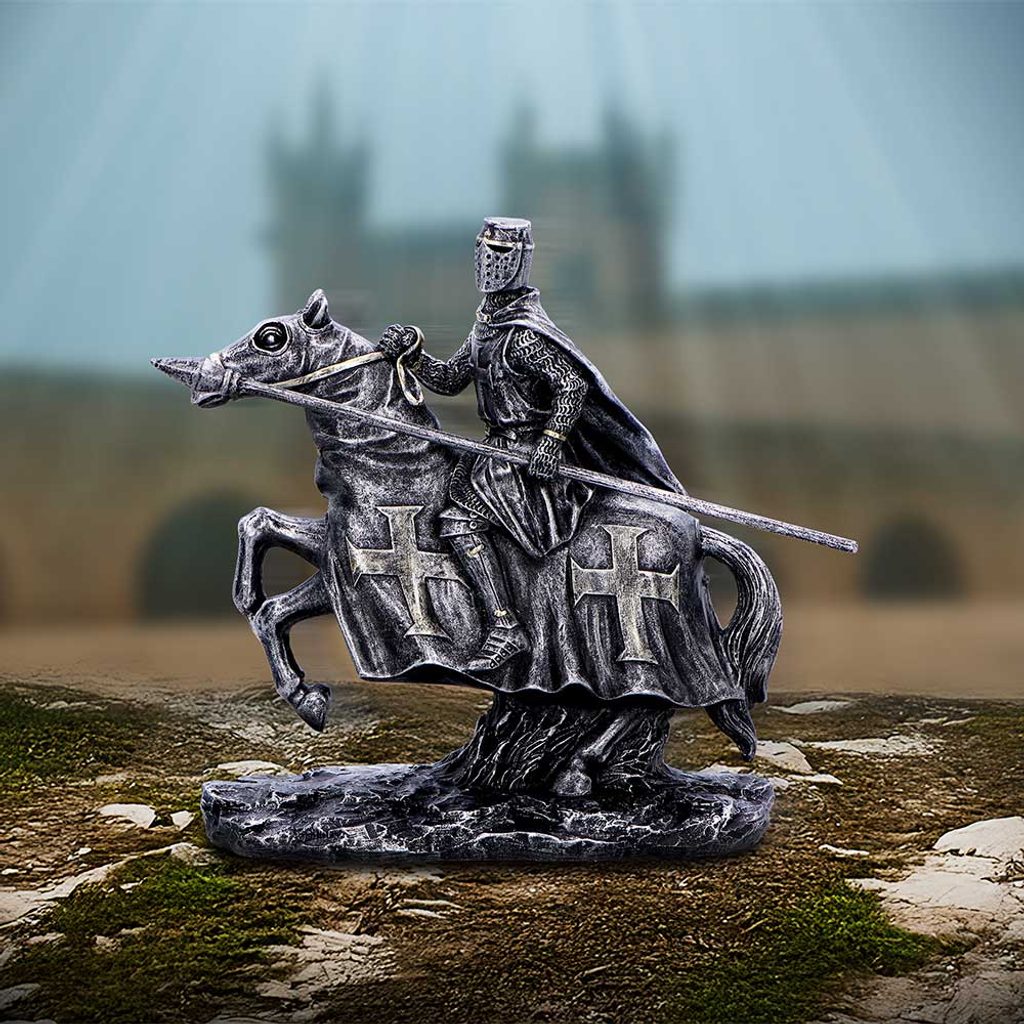 Templářský rytíř na koni, připravený bránit a ctít čest. Výška: 18 cm.