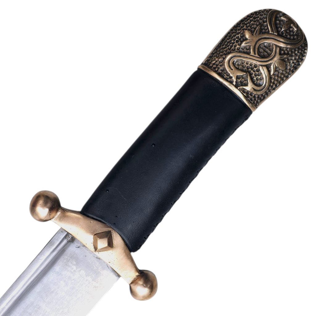 Kumánská šavle po vzoru maďarské šavle z lokality Karos-Eperjesszögön. Tento typ zbraně vychází z tradice kočovných stepních válečníků – Kumánů (Polovců), kteří byli proslulí svou jízdou a lehkou, rychlou výzbrojí. Jejich šavle byly navrženy pro boj z koně – s důrazem na sečné útoky, rychlost a efektivitu. Zakřivení čepele umožňovalo plynulý řez při průjezdu kolem protivníka, což bylo typické pro stepní styl boje.