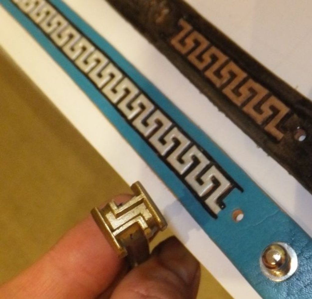 Raznice do kůže s plastickým motivem meandru, velikost otisku 10 x 11 mm. Razidla lze různě kombinovat s dalšími motivy. Můžete zdobit náramky, pásky, hodinky, opasky, klíčenky, amulety, sedla. Motiv je vyroben z tvrdé mosazi na ocelovém trnu. Délka: 10 cm. Využijte tuto raznici i na otiskování do keramiky a měkkých modelovacích hmot včetně marcipánu.
