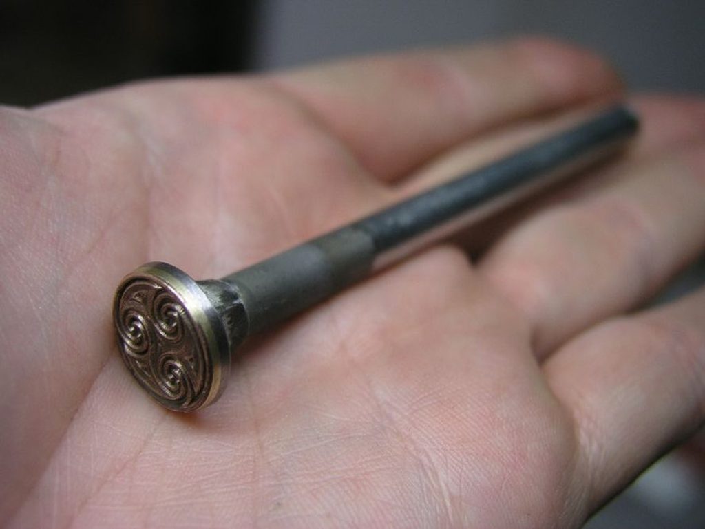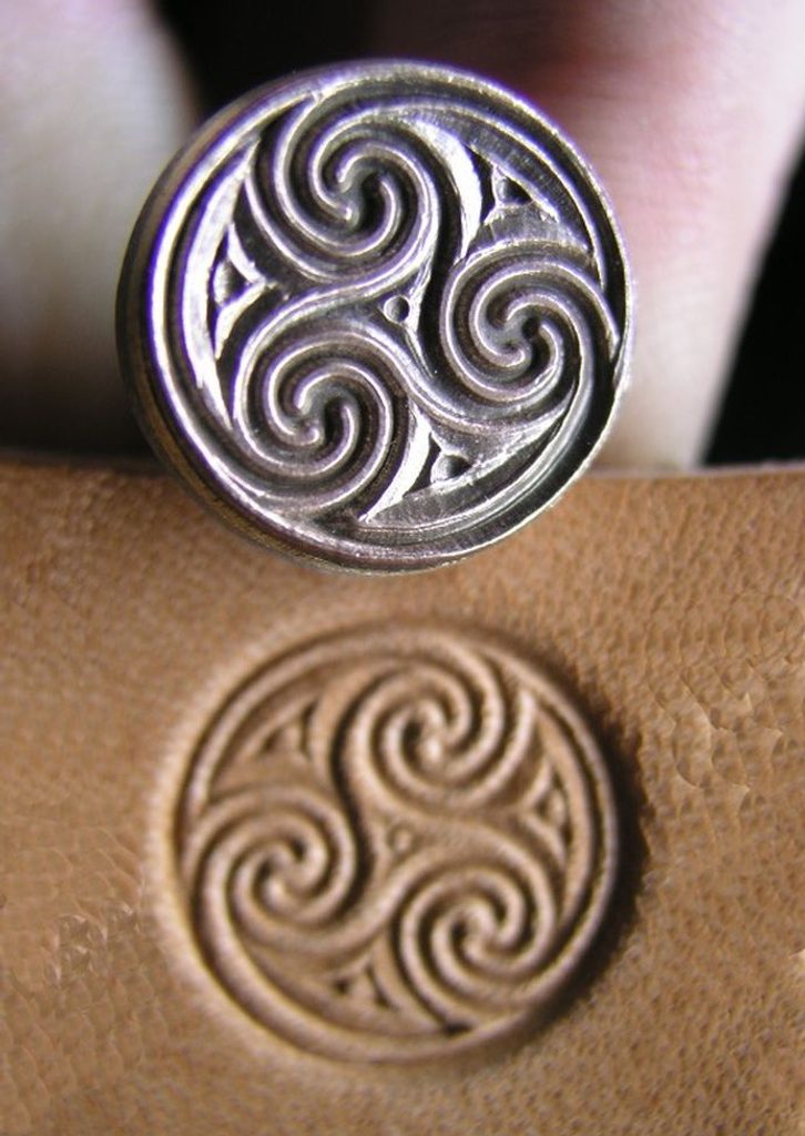 Raznice do kůže s plastickým motivem keltského triskelu, velikost otisku 16 x 16 mm. Razidla lze různě kombinovat s dalšími motivy. Můžete zdobit náramky, pásky, hodinky, opasky, klíčenky, amulety, sedla. Motiv je vyroben z tvrdé mosazi na ocelovém trnu. Délka: 10 cm. Využijte tuto raznici i na otiskování do keramiky a měkkých modelovacích hmot včetně marcipánu.