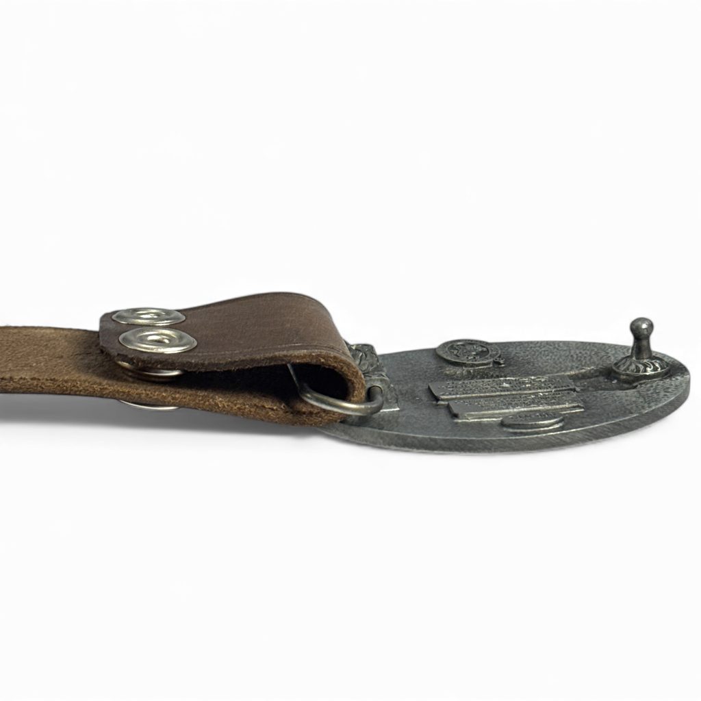 Kožený opasek se systémem umožňujícím rychlou a snadnou výměnu všech spon v této kategorii. Délka cca 150 cm.