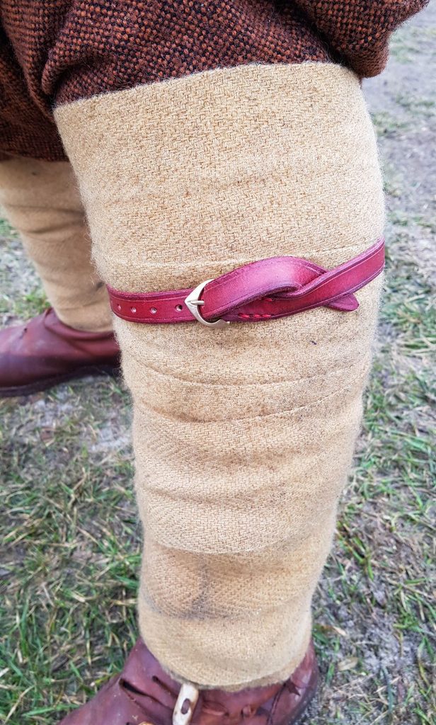 Pár kožených řemínků s bronzovou sponou pro uchycení kalhot či ovinek. Podobné řemínky našly uplatnění v raném a vrcholném středověku.