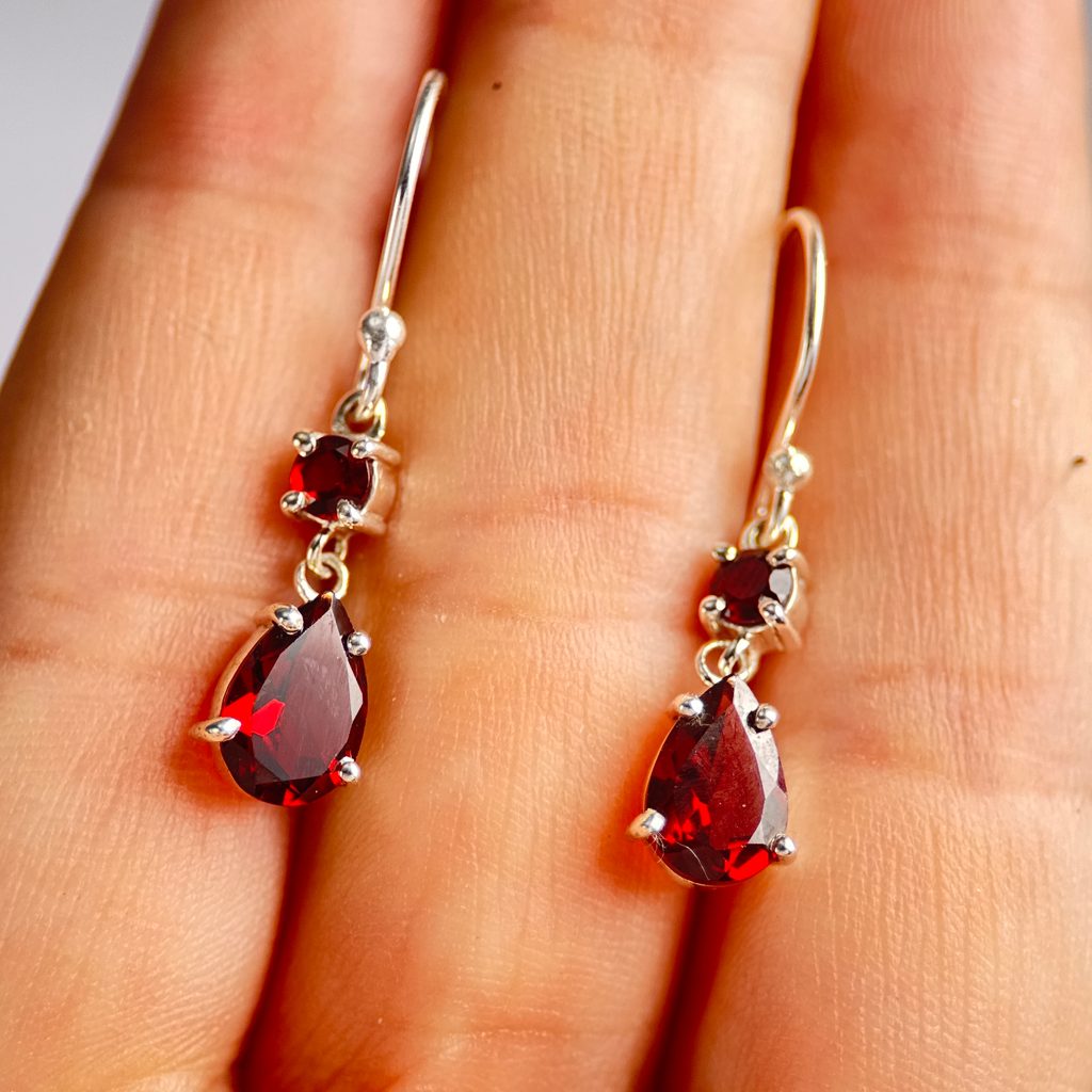 Tyto náušnice jsou osazené výrazným oválným granátem, broušeným fasetovaným brusem pro maximální lesk a hloubku barvy. Jemné stříbrné lůžko ze stříbra ryzosti 925/1000 podtrhuje čistý a moderní vzhled.