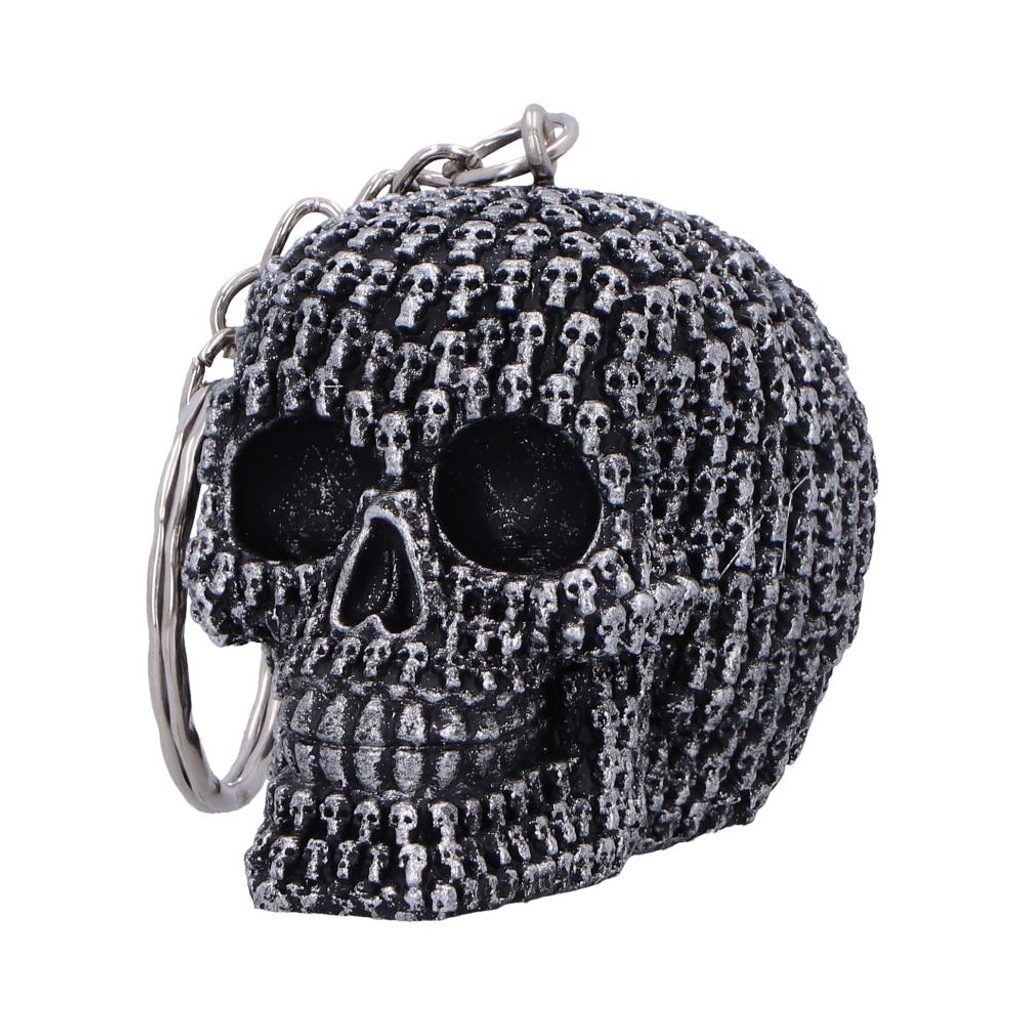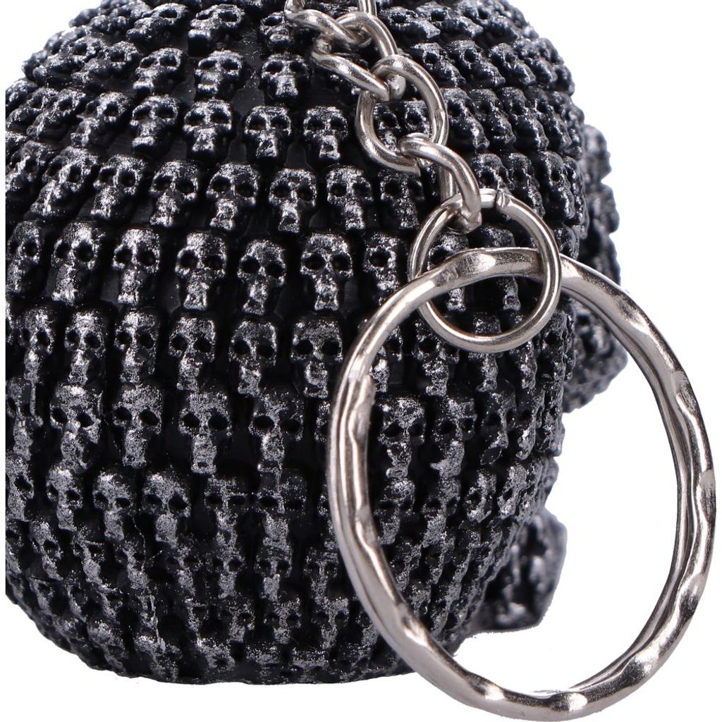 Lebka o průměru přibližně 4,5 cm, je vyrobena z vysoce kvalitní pryskyřice (polyresin), díky čemuž vyniká detailní reliéf stovek drobných lebek uspořádaných v kompaktní formě výročního designu. Povrch tvoří černé základní zbarvení s výrazným stříbrným zvýrazněním, které zdůrazňuje plastickou strukturu a dodává objemu.