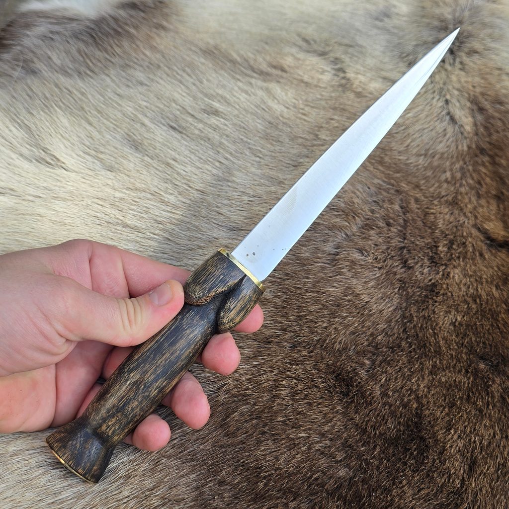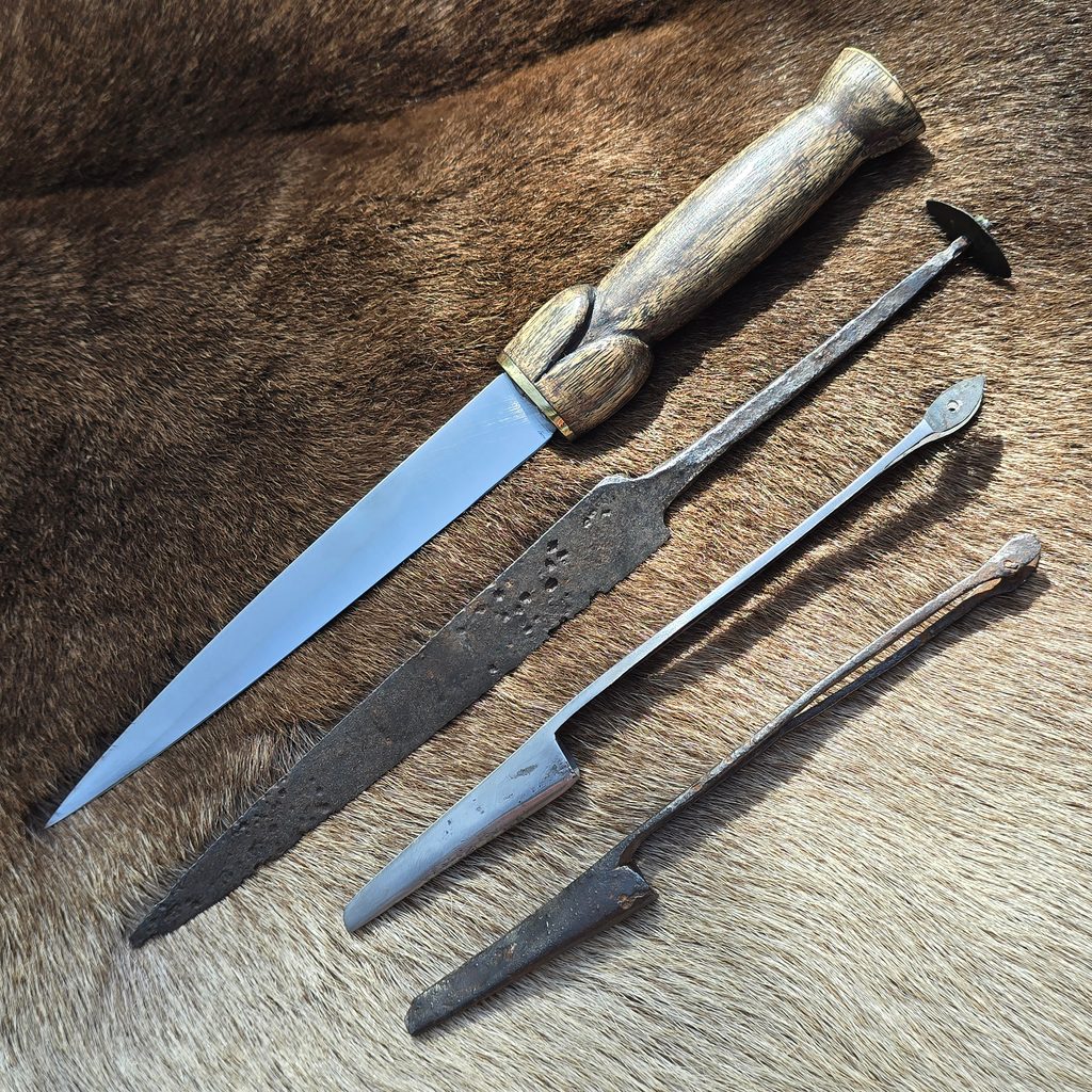 - Materiál: pérová ocel 54SiCr6, mosaz, dřevo