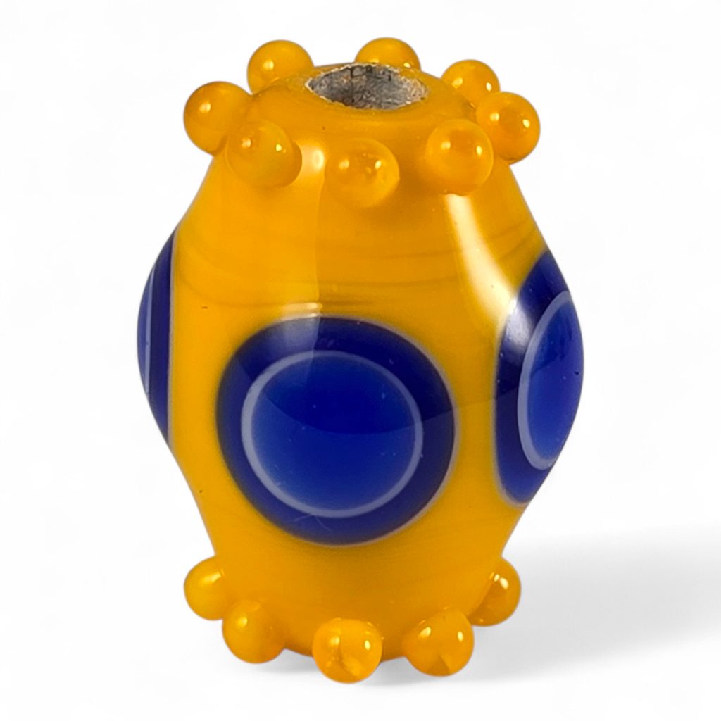 Korálek je ručně vyrobený na sklářském kahanu starou technikou navíjení roztaveného skla na kovovou tyčku – podobně, jako vznikaly korálky v Halštatské době.Podobné korálky se objevují již v starší době železné, ale jejich obliba vydržela až do raného středověku.