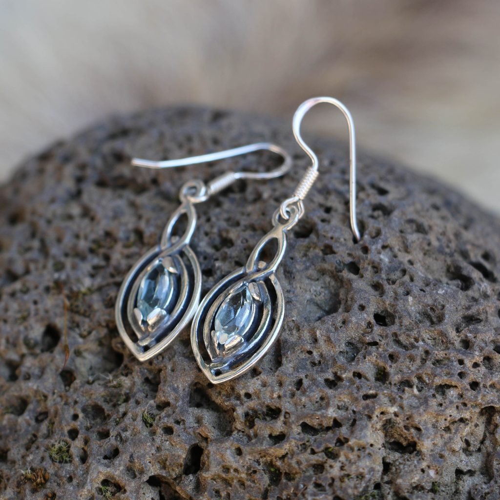 MAIA, stříbrné náušnice s modrým topazem, Ag 925