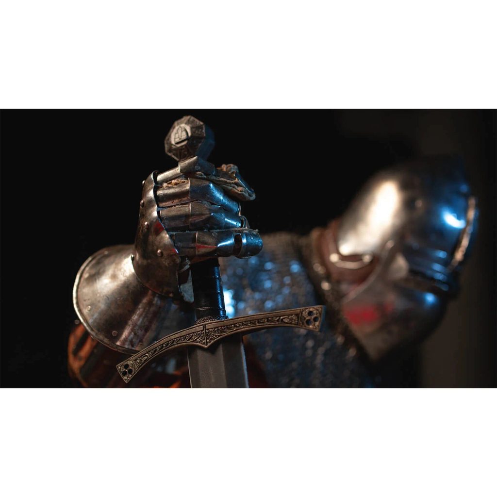 Meč byl navržen podle originálních herních modelů a vyroben z odolné pěny Calimacil, která je bezpečná pro trénink a šermířské nácviky, ale zároveň dostatečně pevná pro cosplay a dekorativní využití.