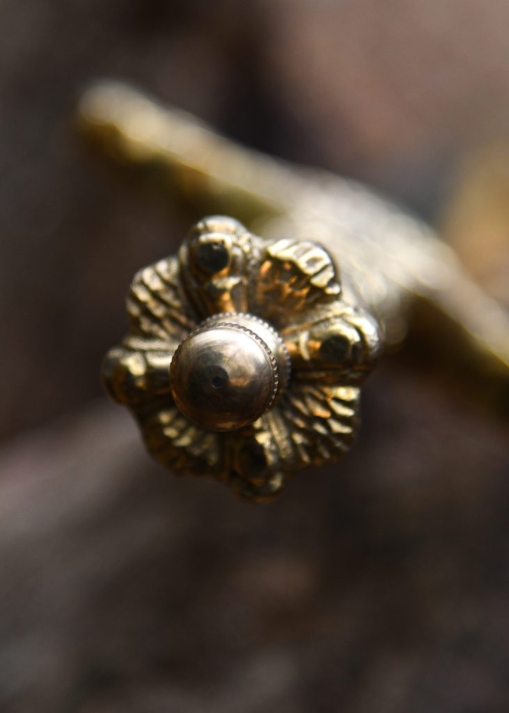 Materiál: čepel z vysokouhlíkové oceli, mosazný jílec