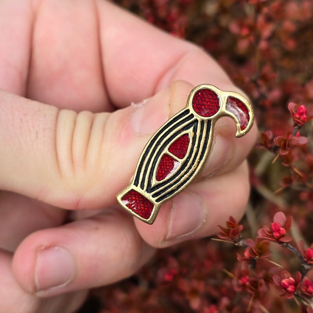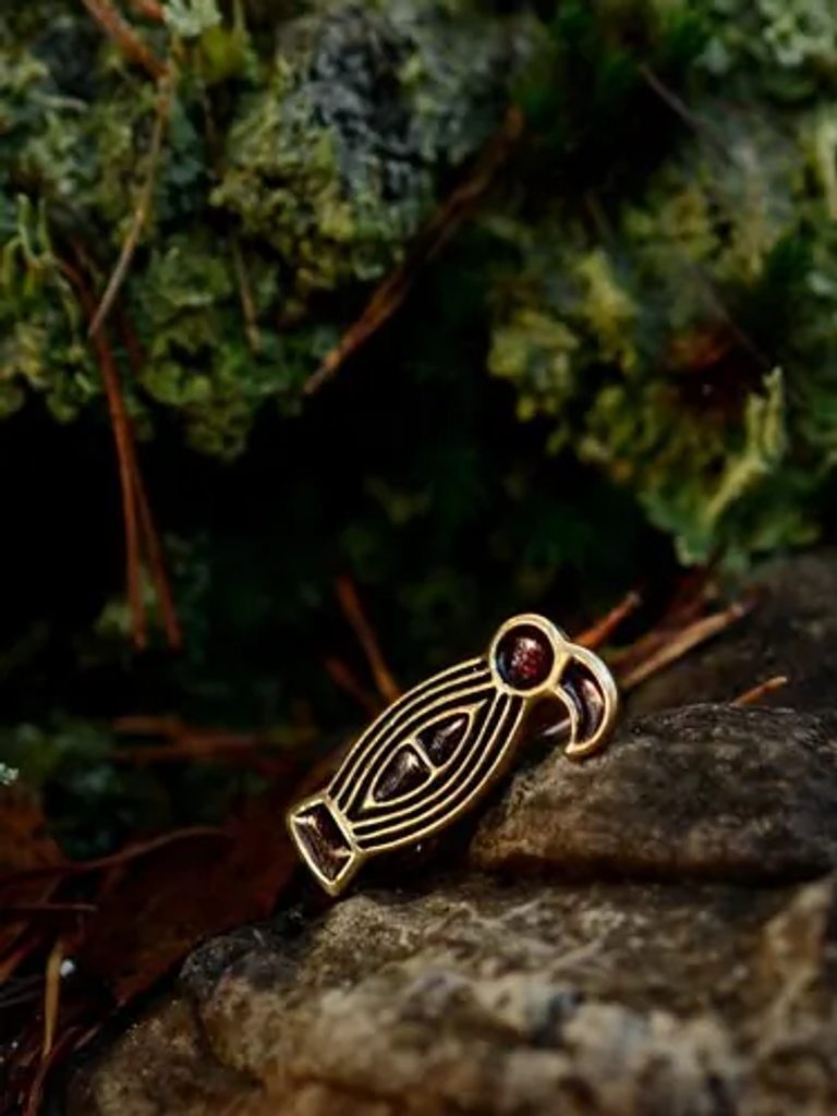 Merovejská ptačí brož s Cloisonne z raného středověku podél linie k merovejskému nálezu.