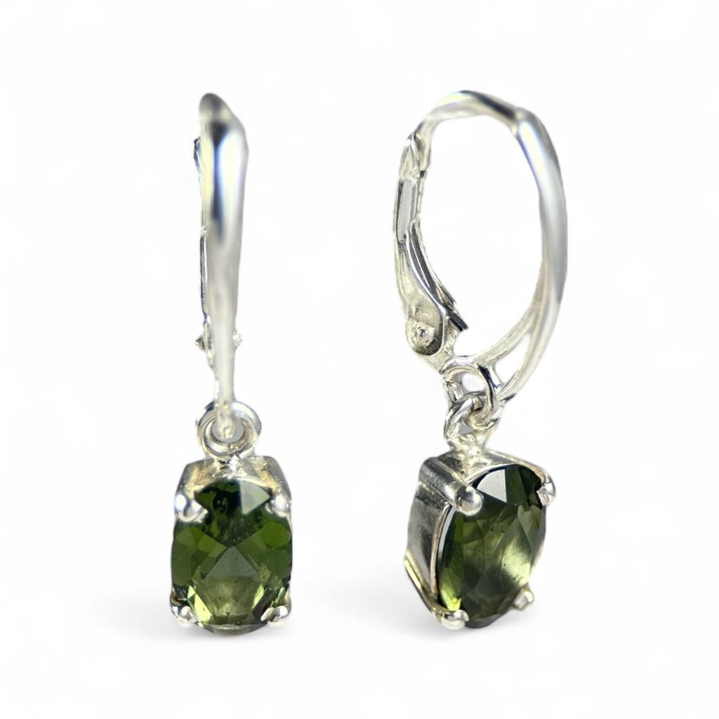 KIRA, stříbrné náušnice s vltavínem, Ag 925