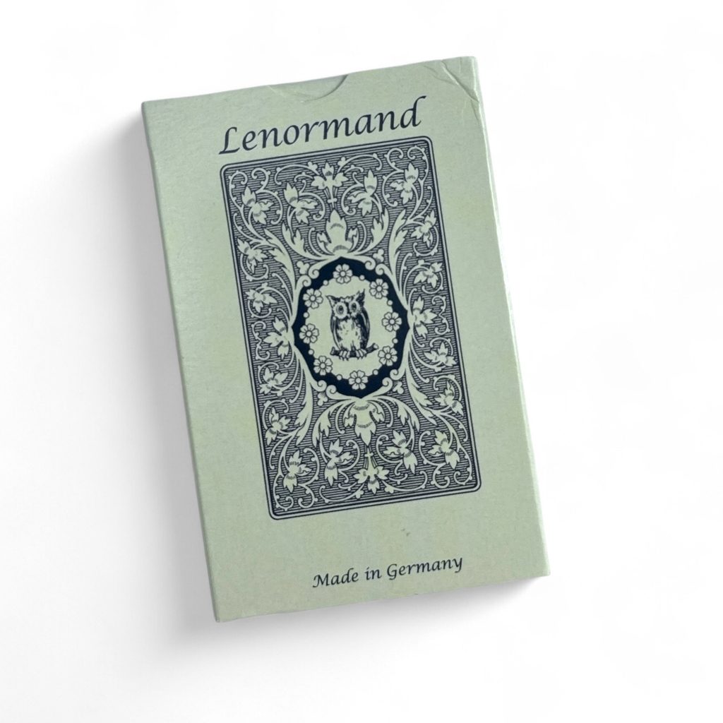 Mlle Lenormand Blue Owl balíček, pojmenovaný podle sovy zobrazené na rubu, se skládá z 36 karet ve velikosti kapsy. Na rozdíl od tradičních balíčků s propojenými hracími kartami má každá karta vepsaný básnický verš do své staromódní grafiky, což přidává hloubku a symboliku do zážitku z výkladu.