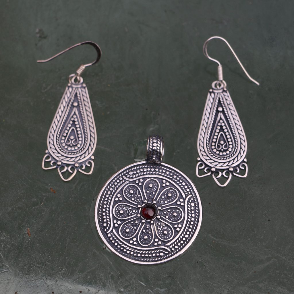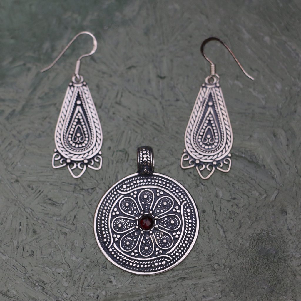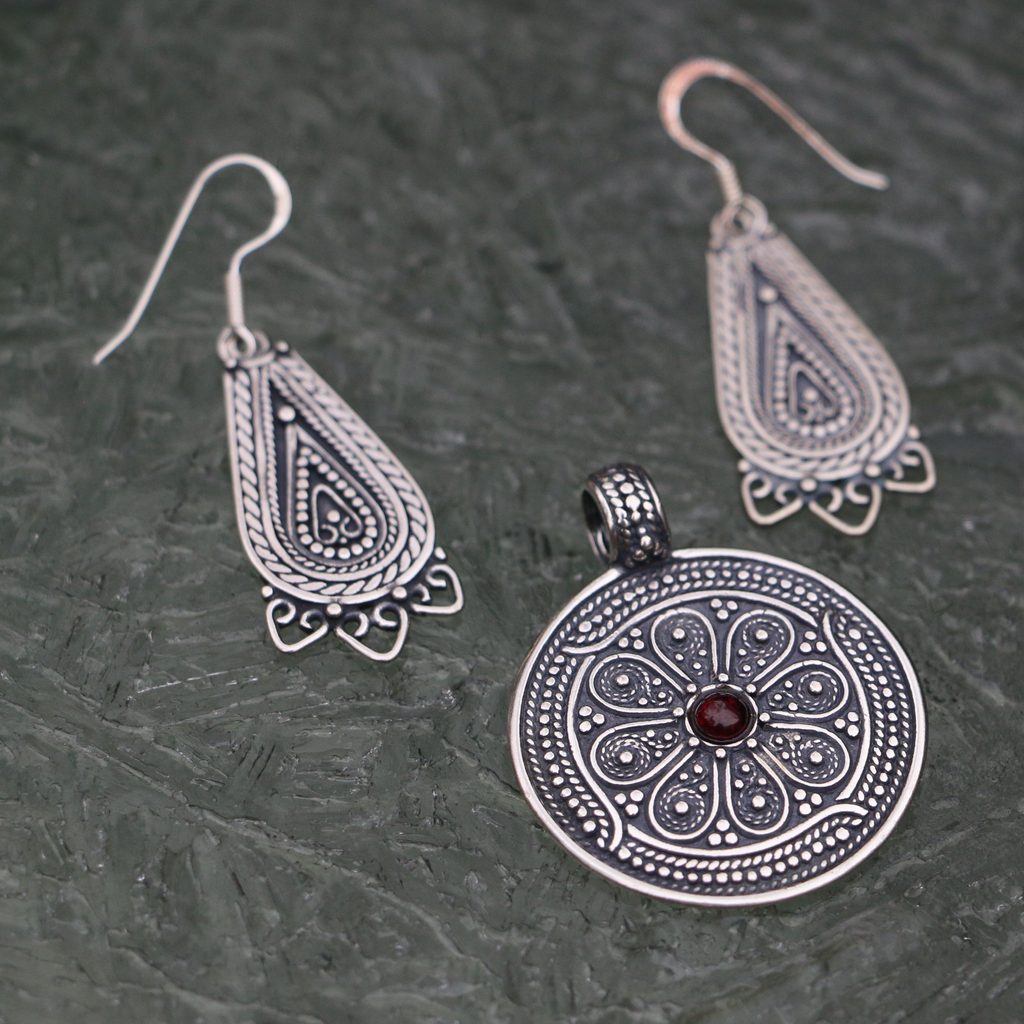 MORAVIA MAGNA - velkomoravská sada stříbrných šperků, Ag 925 granat