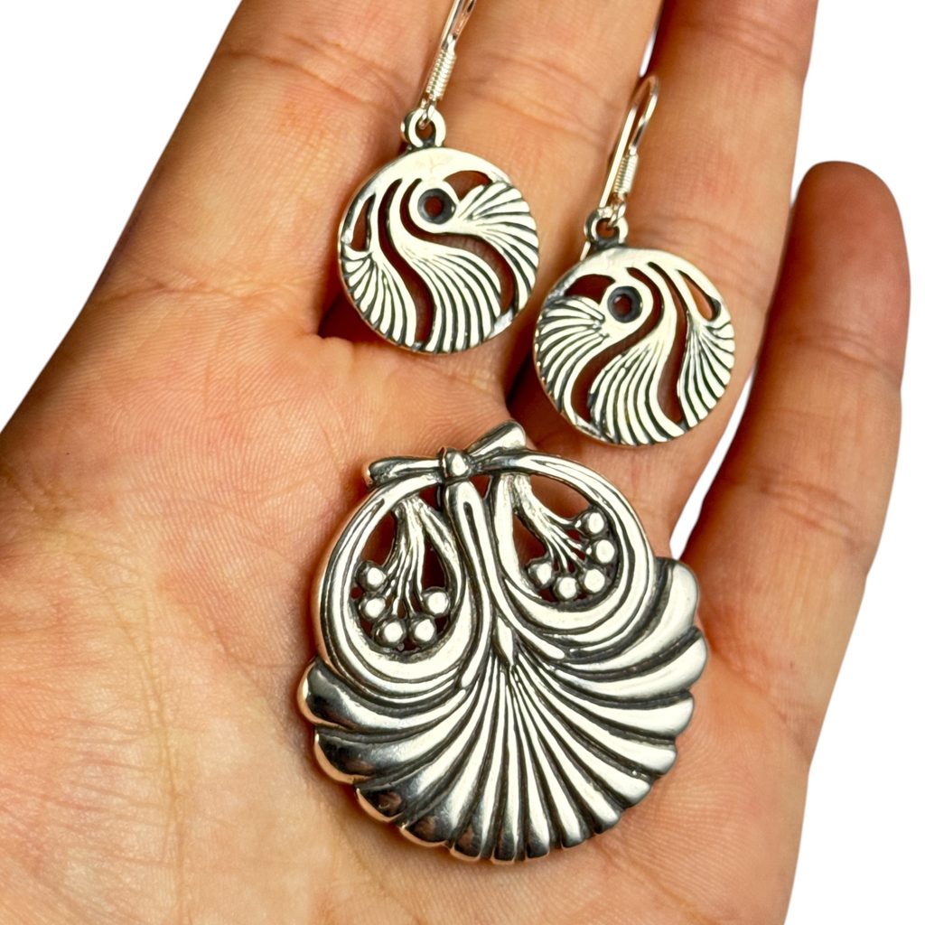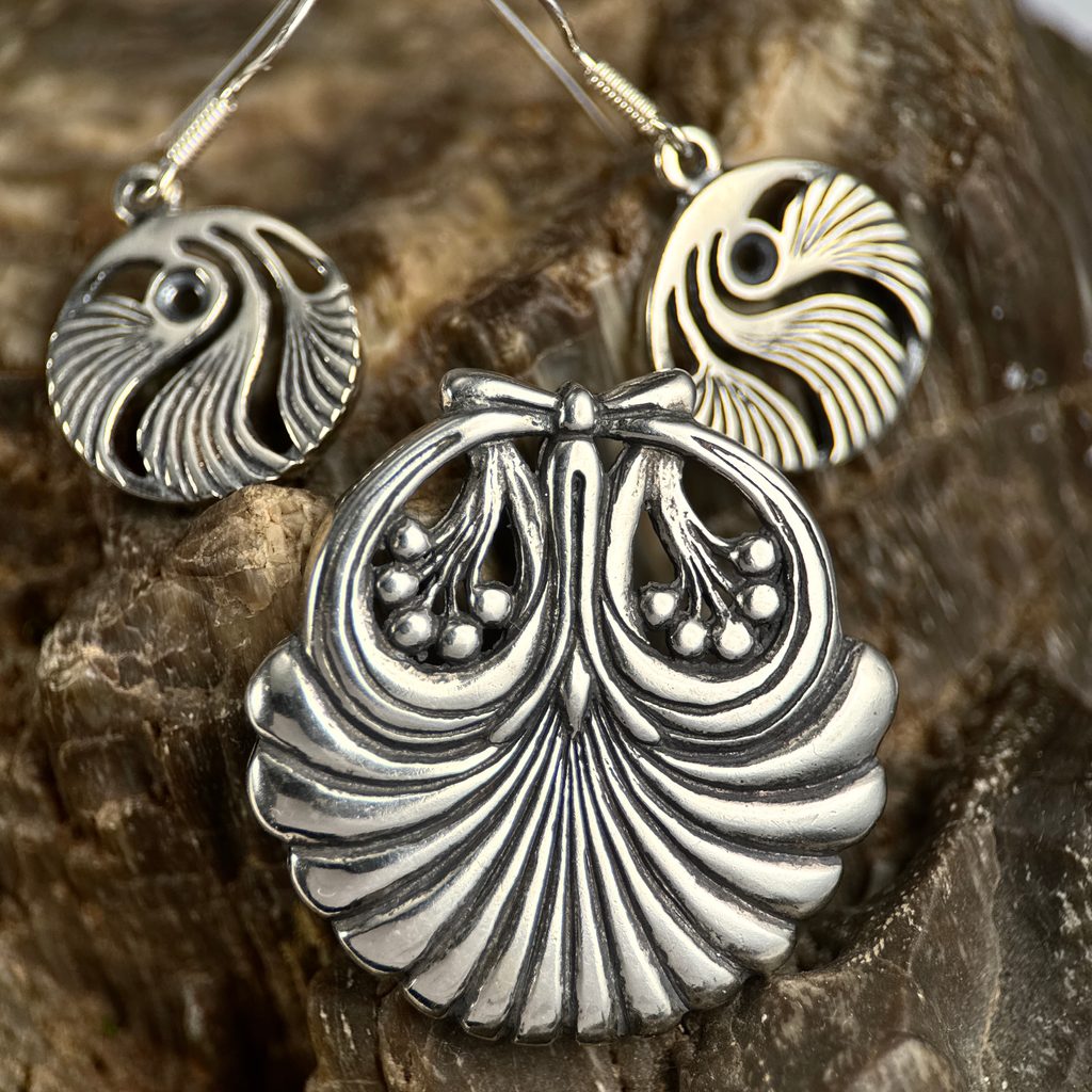 Mušle náušnice - stříbrný secesní šperk vlastní výroby ve tvaru mušle září odlesky květinových a přírodních motivů. Secese navazuje na lidové tradice a romantismus, s historickými kořeny až do středověku. K hlavním městům secese patří Paříž a Praha, kde mimo jiné působil Alfons Mucha. Éra secese nás nepřestává inspirovat, spojuje krásu přírody i eleganci měst. Čistota, elegance a jednoduchost. K náušnicím nabízíme i přívěsek v podobném stylu.