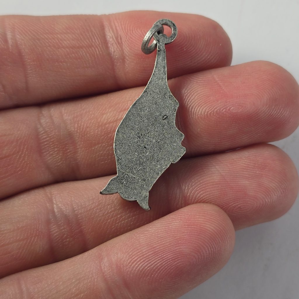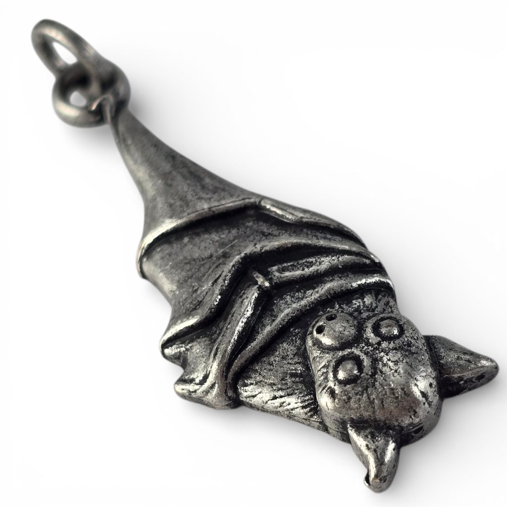 Přívěsek ve tvaru netopýra zachycuje okamžik, kdy zvíře visí hlavou dolů a tiše pozoruje své okolí – stejně jako v temné jeskyni, opuštěné štole nebo vysoko v klenbě staré hradní věže. Detailní zpracování připomíná typickou siluetu tohoto nočního tvora, který je od nepaměti spojován s tajemstvím, nocí a skrytými místy.