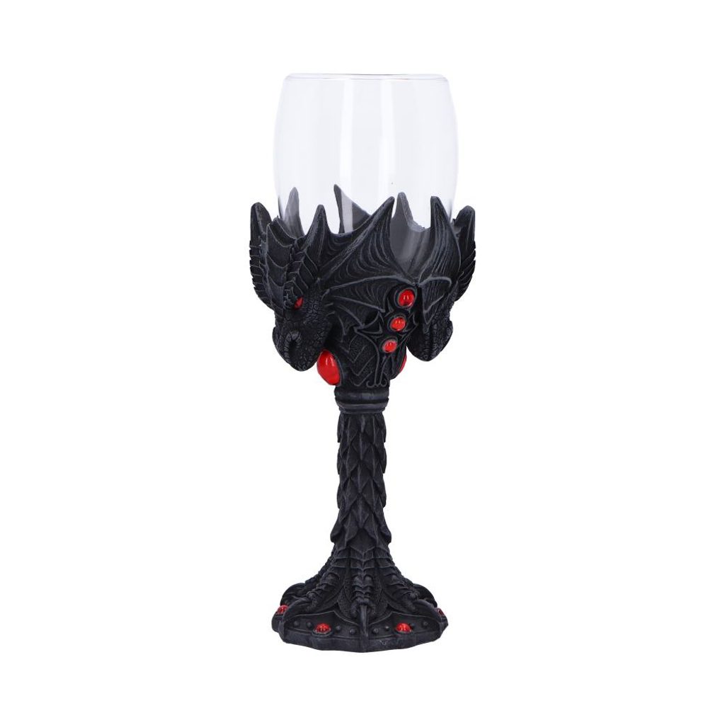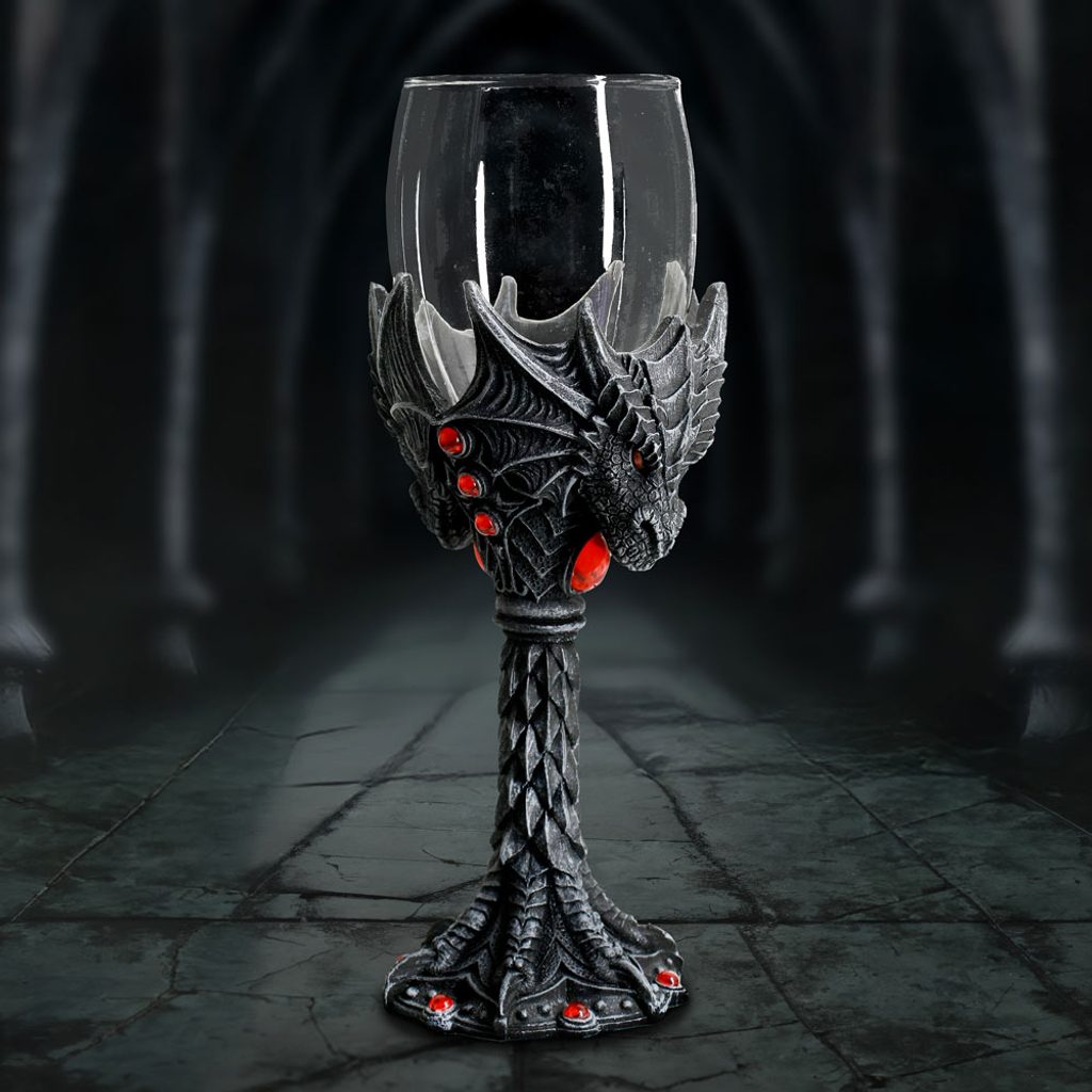 Nightflame Dragon Goblet je gotický kalich, který okouzlí svou temnou atmosférou a motivem draka. Tělo kalichu je vyrobeno z černého polyresinu a zdobeno reliéfními detaily s rudými akcenty, jež symbolizují oheň