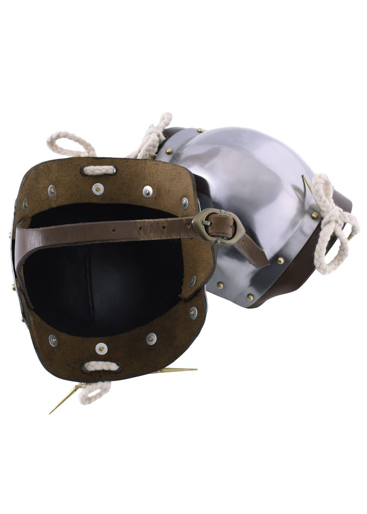 Pár pozdně středověkých chráničů kolen vyrobených z oceli. Tyto chrániče nosili jak pěší vojáci, tak i rytíři.