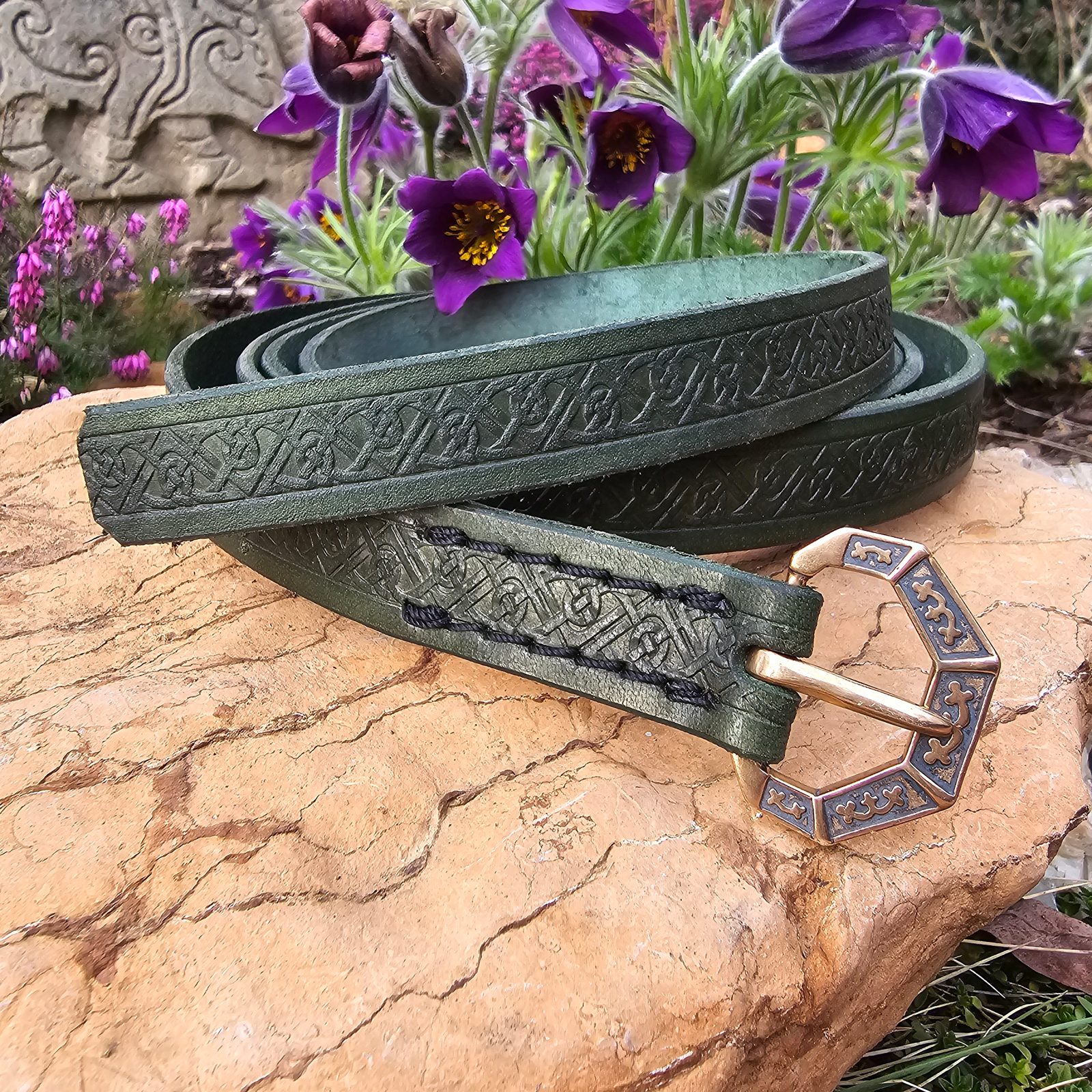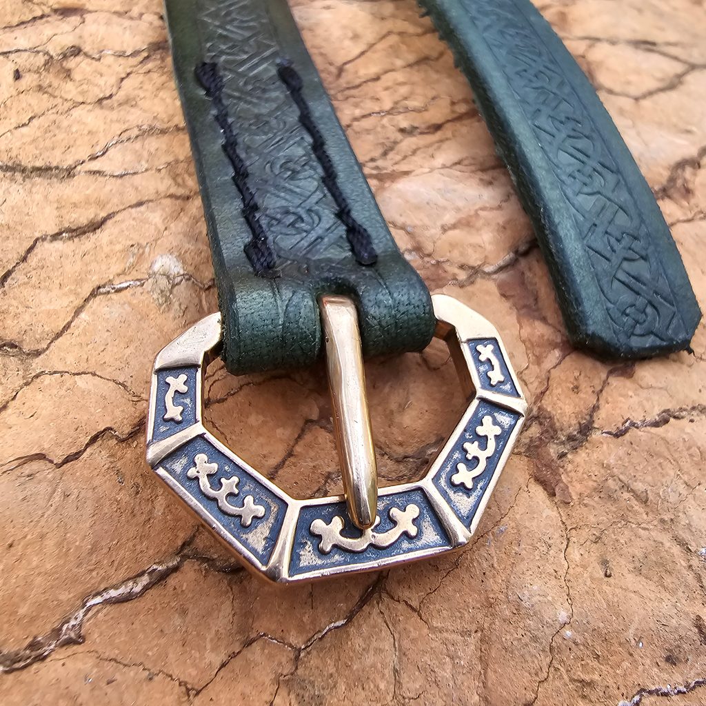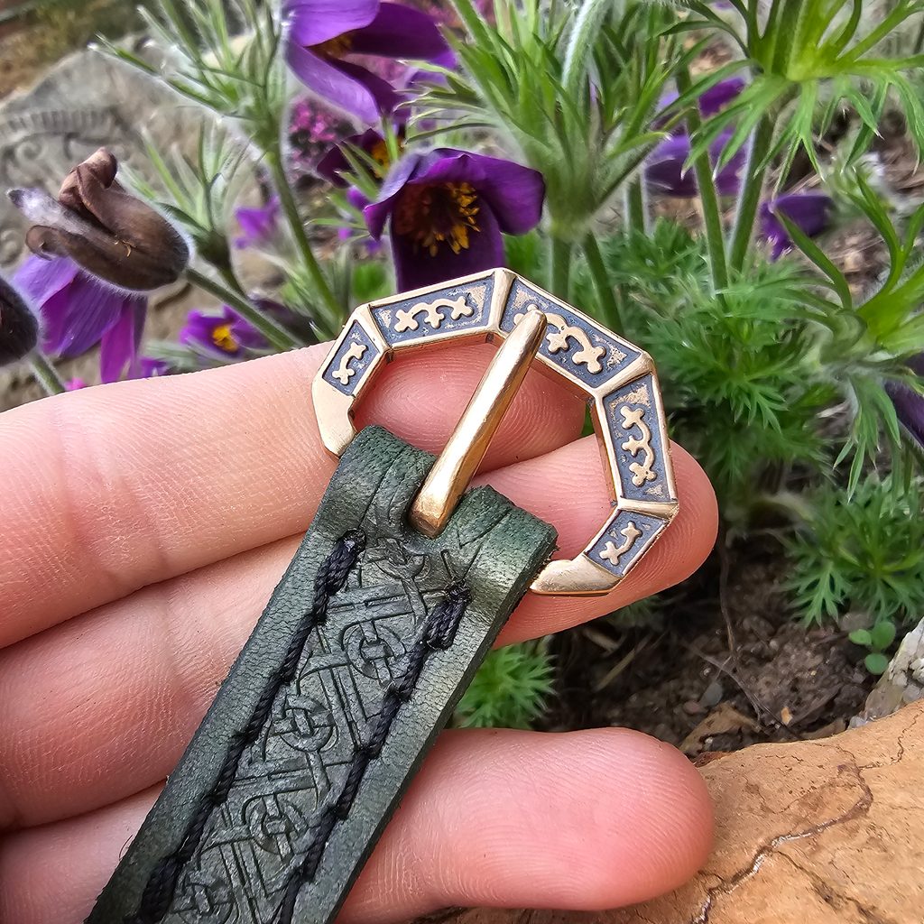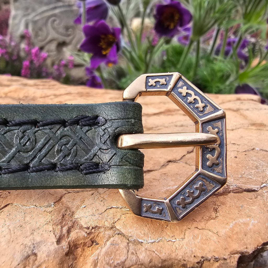 OPASEK KOŽENÝ SALZBURG, XIII. stol., zelený. 2 x 160 cm, materiál na sponu: bronz.