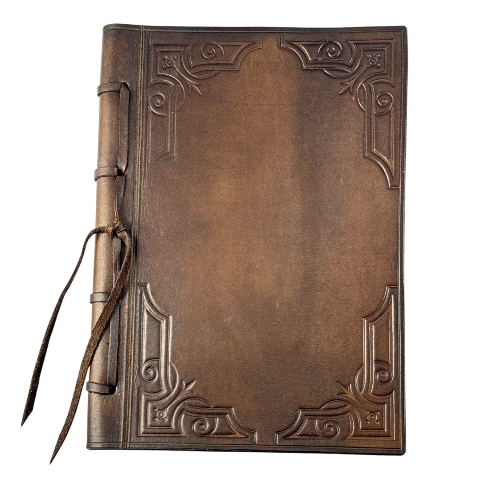 Sešit s ručně vyráběným zdobeným koženým přebalem s možností výměny listů papírů. Motivy na kožených deskách pochází ze zachráněných starých secesních raznic a nyní po více než sto letech našly opět uplatnění a nyní se vracejí k životu