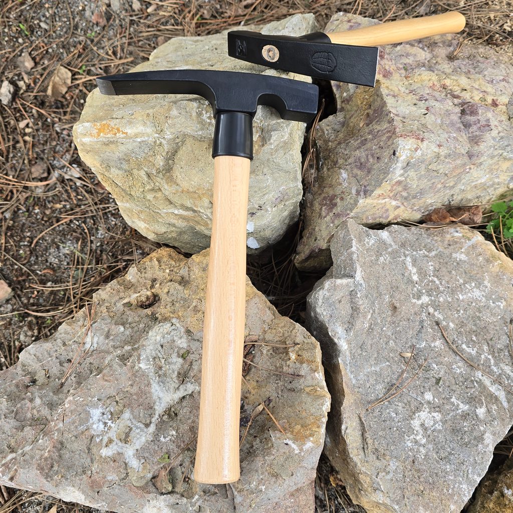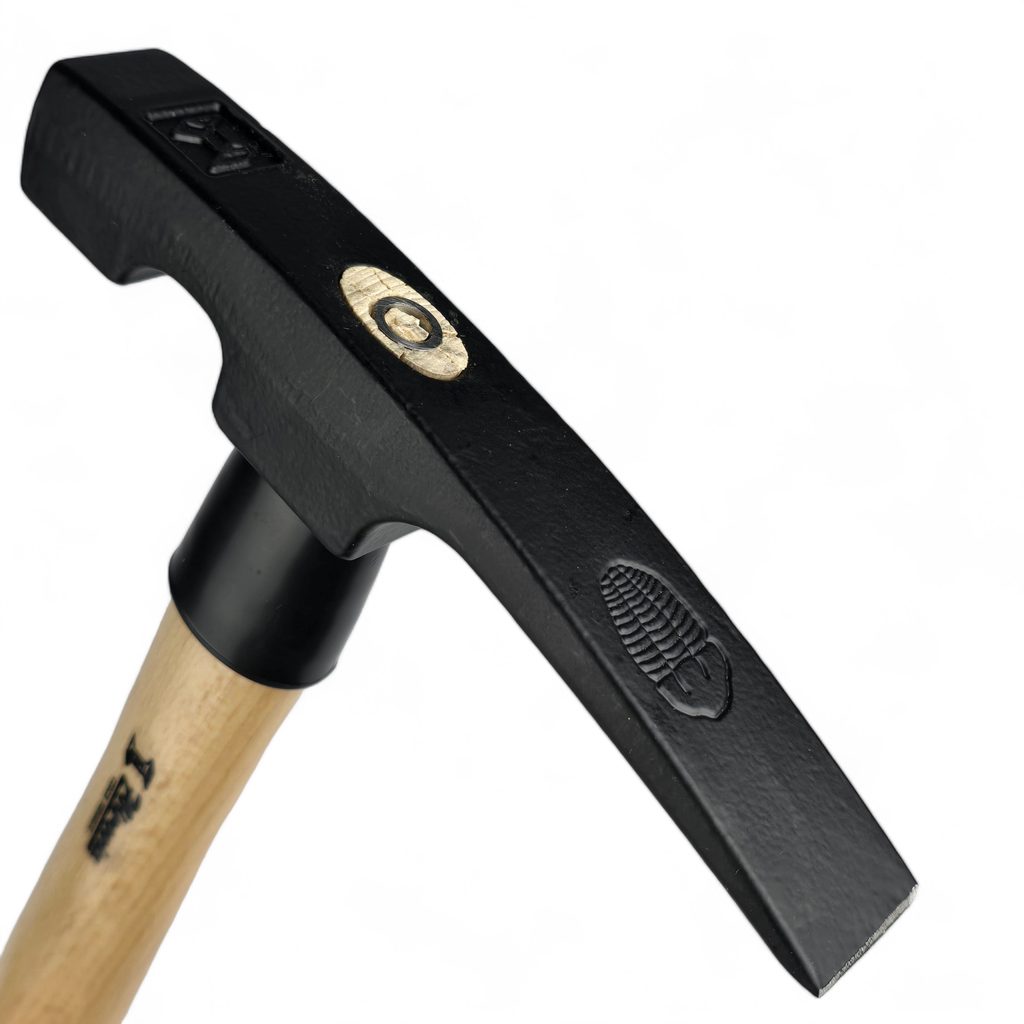Profesionální paleontologické kladívko české výroby s vyraženým znakem trilobita. Ideální pracovní pomůcka pro paleontology, geology či mineralogy. Geologické kladivo má zakončení ve tvaru dlátka. Opatřeno ochranným černým lakem, plastový chránič topůrka. vyrobeno v České republice.