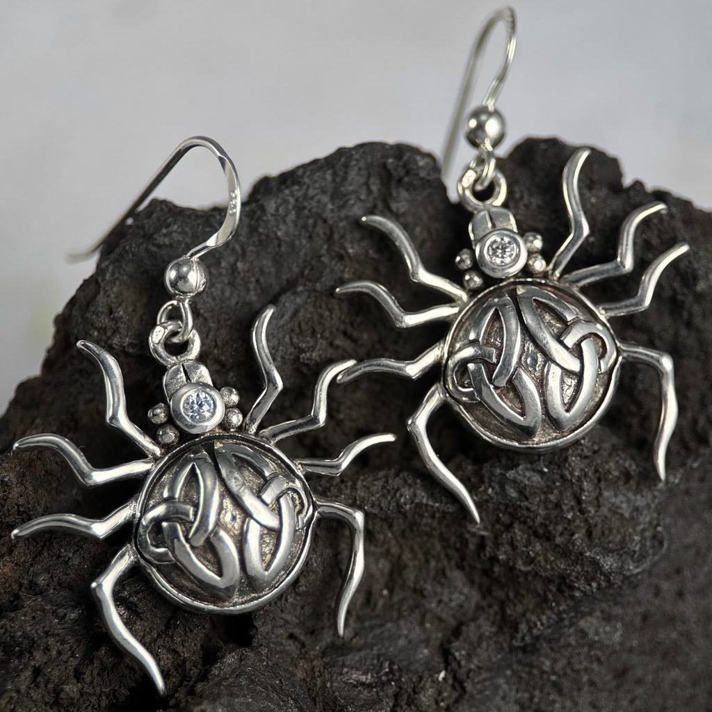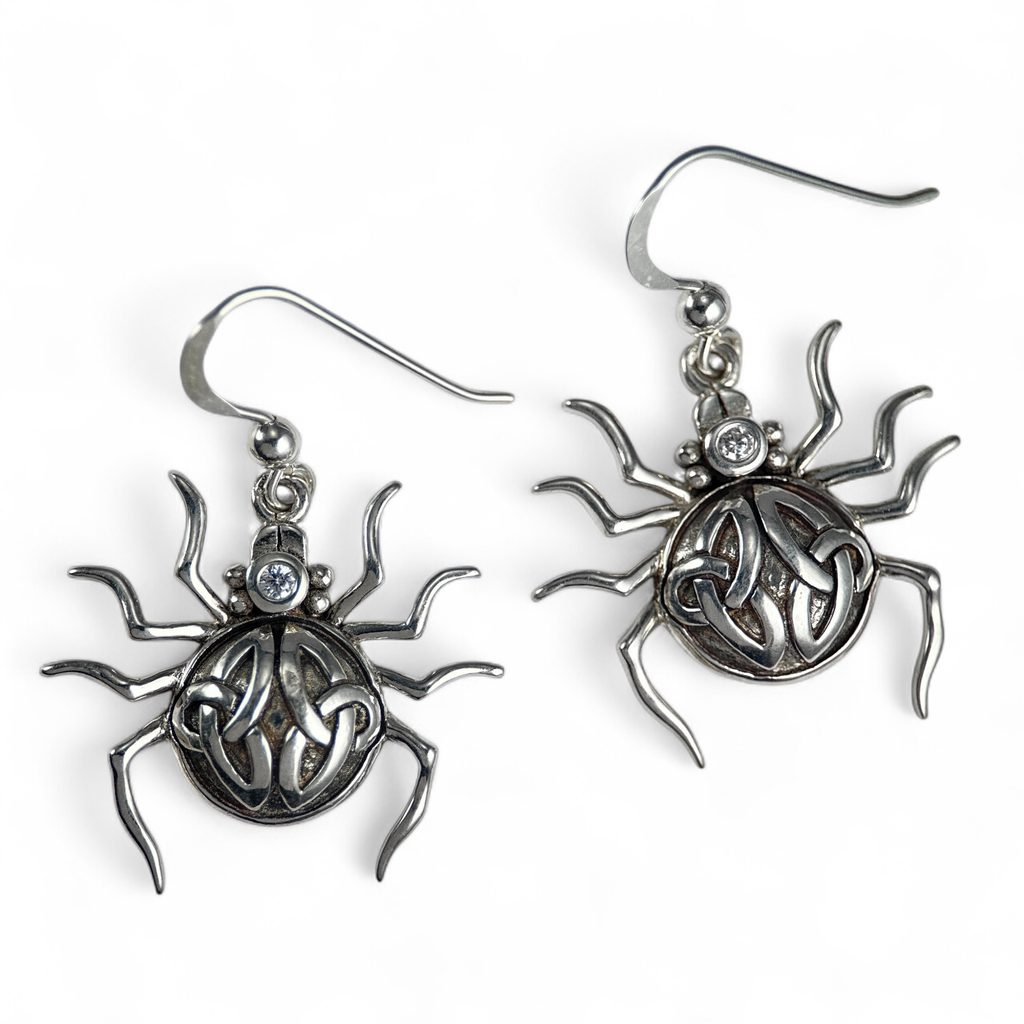 Stříbrné náušnice s pavoučkem a triquetrou