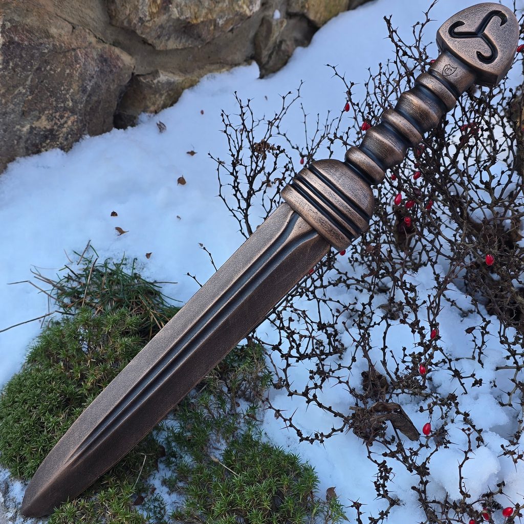 Dýka Perseus přináší nový pohled na dobu bronzovou. Její čepel i rukojeť mají bronzovou barvu se záměrně zestárlou povrchovou úpravou, která podtrhuje antický vzhled celé zbraně. Rukojeť je tvarována tak, aby poskytovala pevný úchop a zabránila klouzání, zatímco hlavice vyvažuje zbraň a je zdobena jednoduchým triskelionem, typickým symbolem doby bronzové.