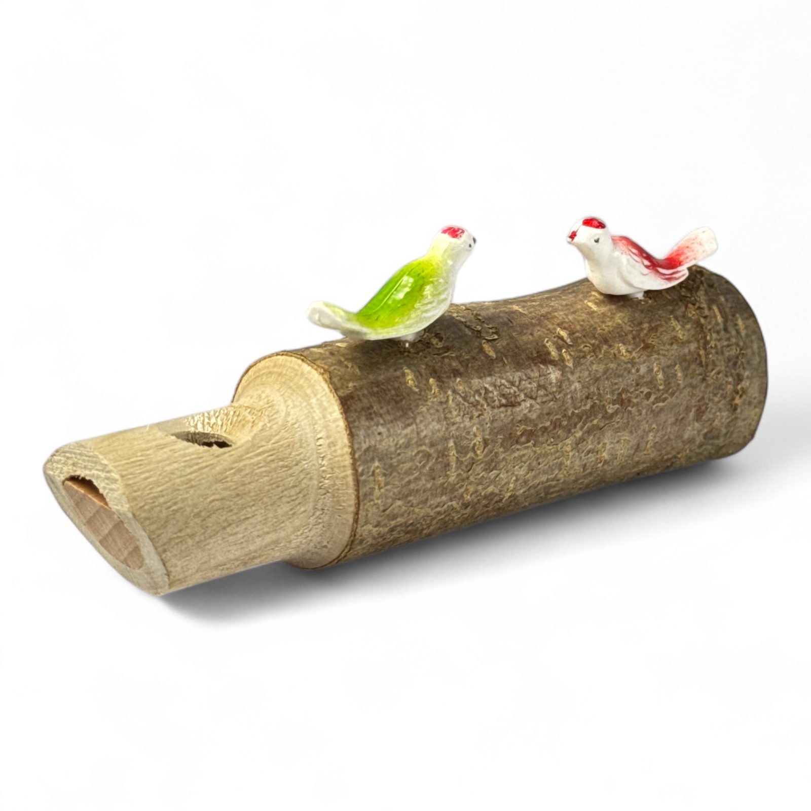 Originální a plně funkční dřevěná píšťalka s ptačím motivem.