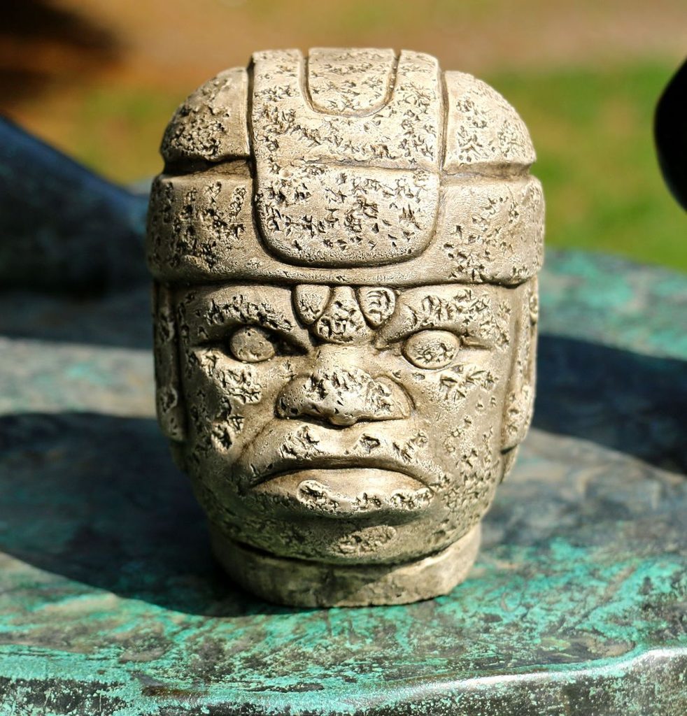 Tato obrovská socha je pozůstatkem olmécké kultury působící na území pozdější mayské civilizace. Byla vytvořena kolem roku 1000 př. n. l. Podobných hlav vysokých asi 3,5 m bylo nalezeno více. Nyní se nacházejí v parku La Venta na jihu Mexika. Velikost: 95 × 120 × 95 mm. Materiál: umělý kámen.