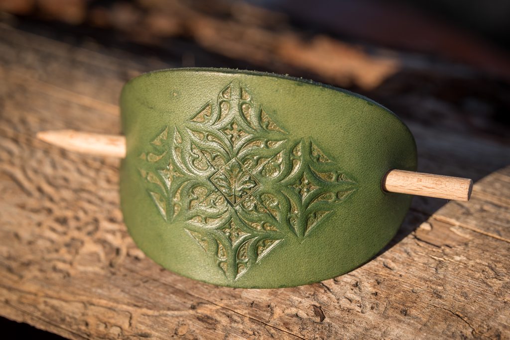 PLATAN, kožená spona do vlasů, zelená
