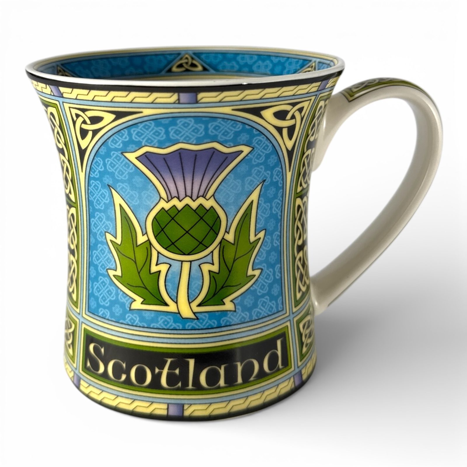 Tento hrneček s motivem skotského bodláku zobrazuje tradiční národní symbol Skotska, který má hluboké historické kořeny. Podle dochované legendy se bodlák stal symbolem země v době vikingských nájezdů, kdy jeden z útočníků v noci nepozorovaně vstoupil na bodlák. Jeho výkřik bolesti probudil skotské obránce, kteří tak získali čas k obraně a útočníky porazili.