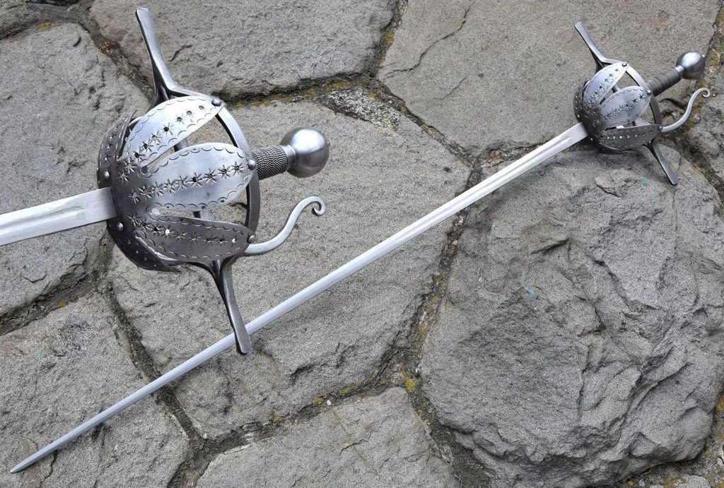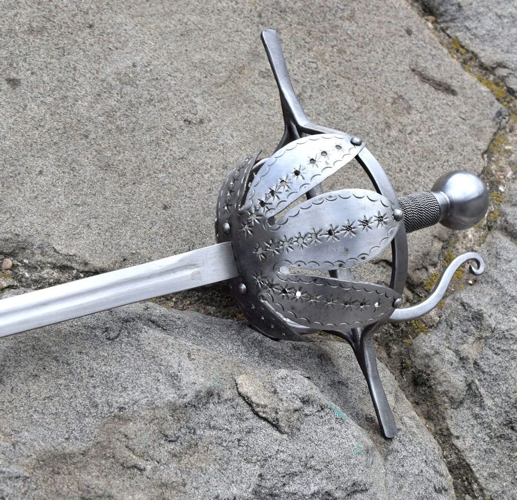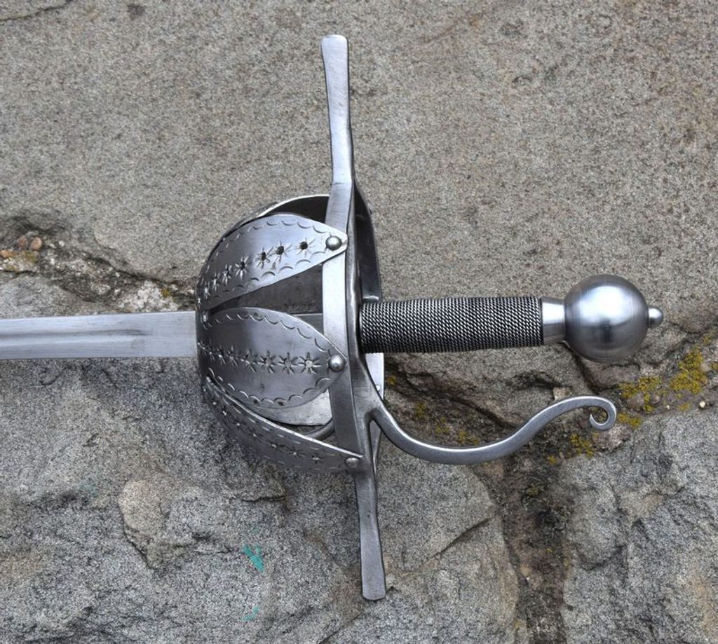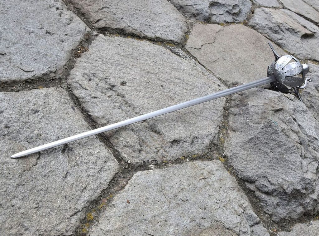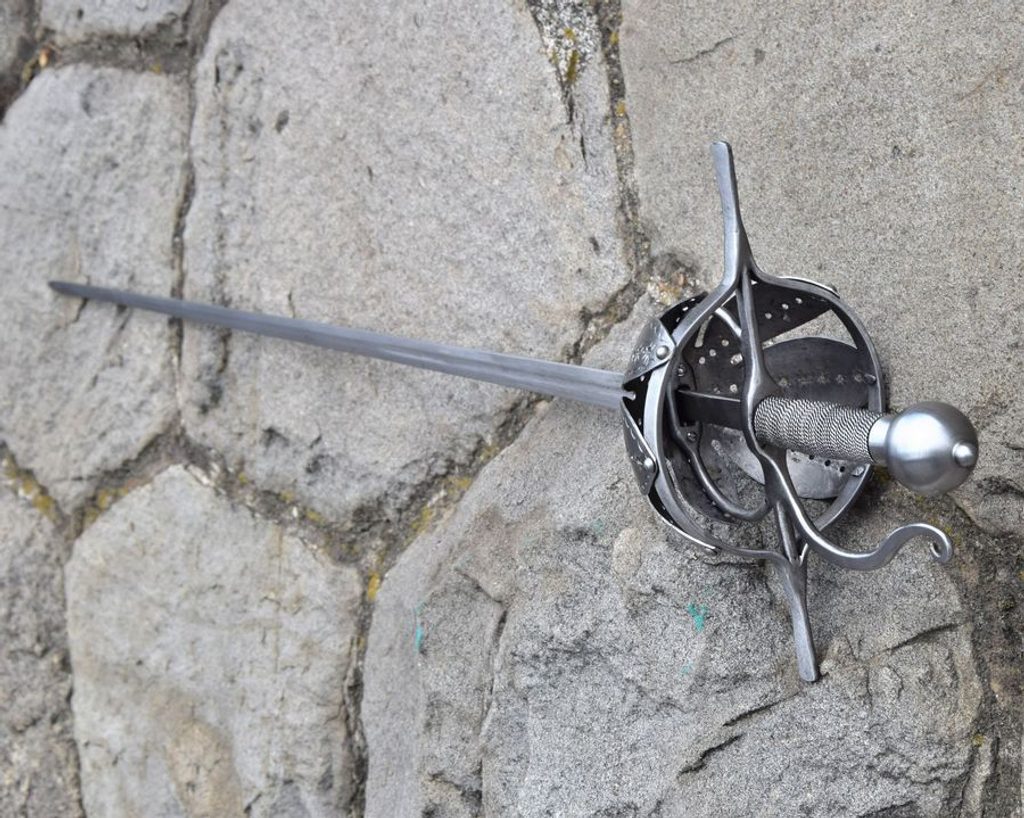 Rapír vyrobený z pružinové oceli, zakalen n cca 52 HRC. Celková délka cca 108 cm, délka čepele cca 88 cm. Váha cca 1,4 kg.