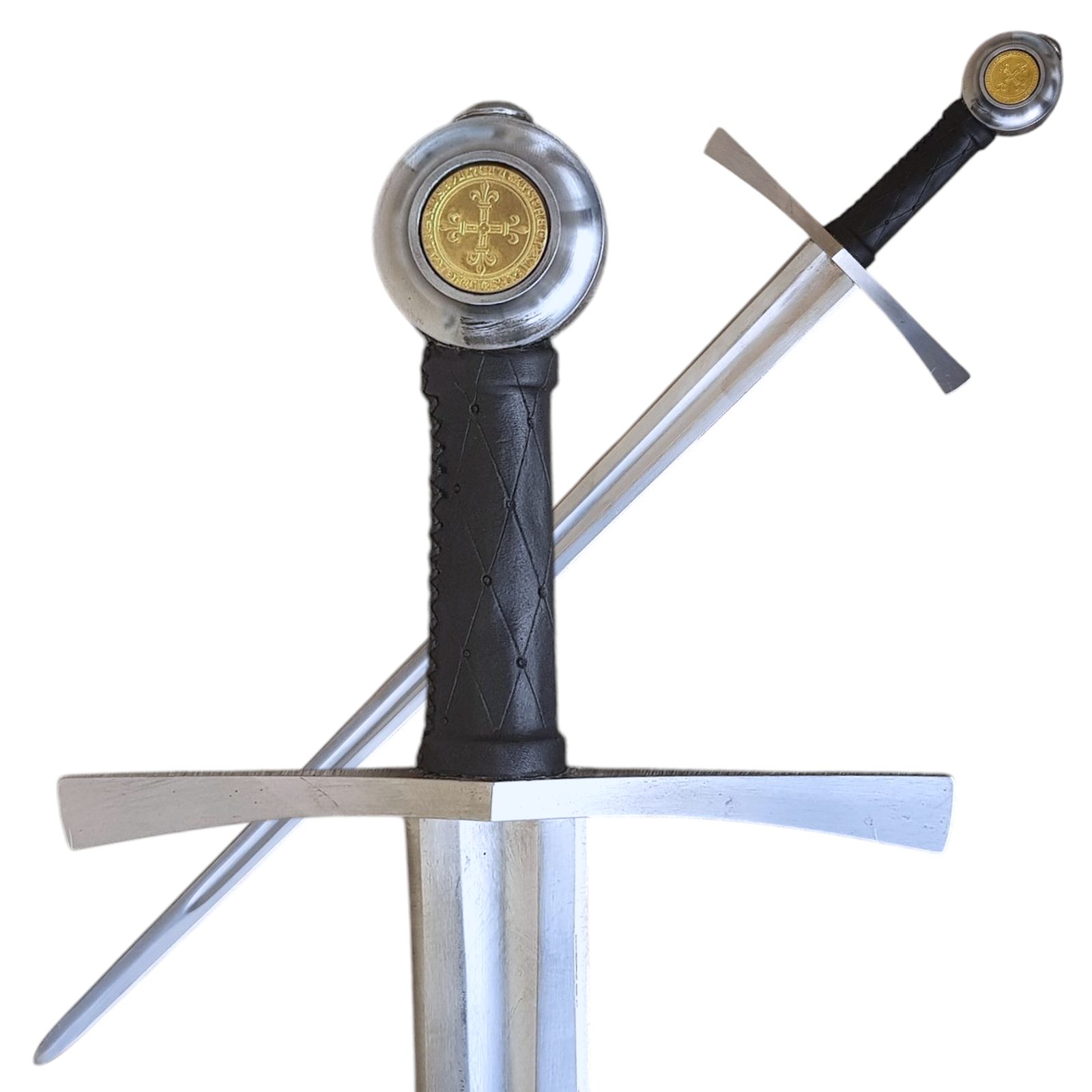 ARAGON, jednoruční středověký meč s templářským křížem (mince Ecu). Výrobek naší kovárny. Pochva není součástí výrobku, lze ji však doobjednat po předešlé dohodě.