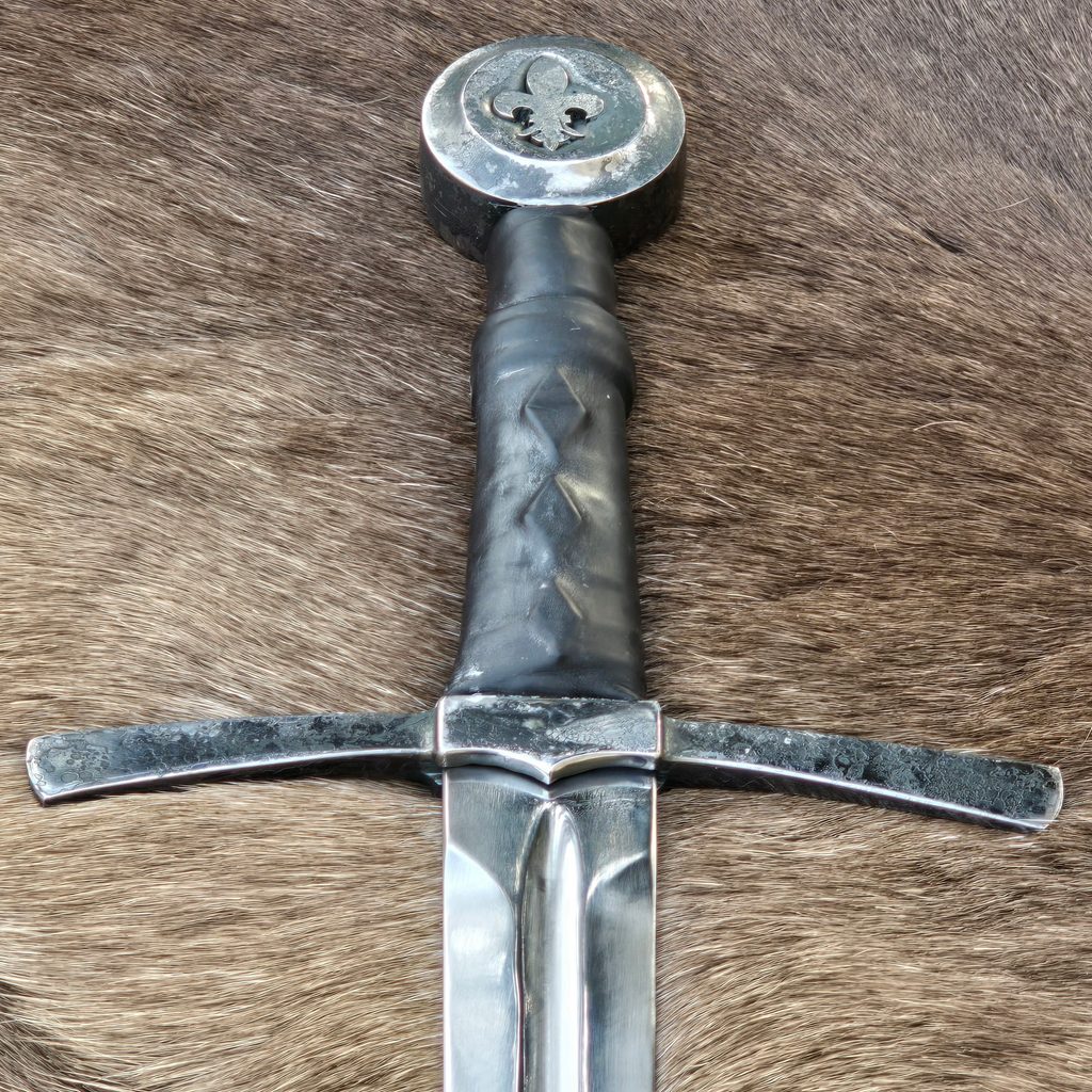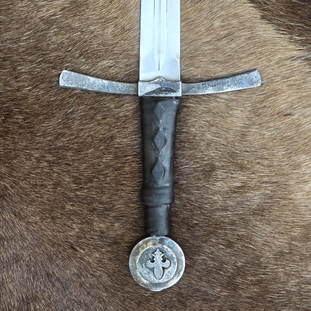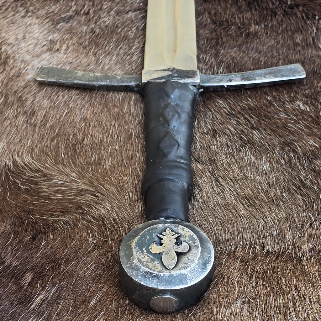 JEDNORUČNÍ MEČ, který potěší ty z Vás, kteří si potrpí na starobylém vzhledu a na ruční práci (hlavice a záštita). Meč je samozřejmě určen pro historický šerm, 2 roky záruka a možný i pozáruční servis. Oceníte na něm zejména jeho nízkou váhu. Záštita zavařená mosazí, aby se samovolně neuvolňovala. Kvalitní kožená omotávka.