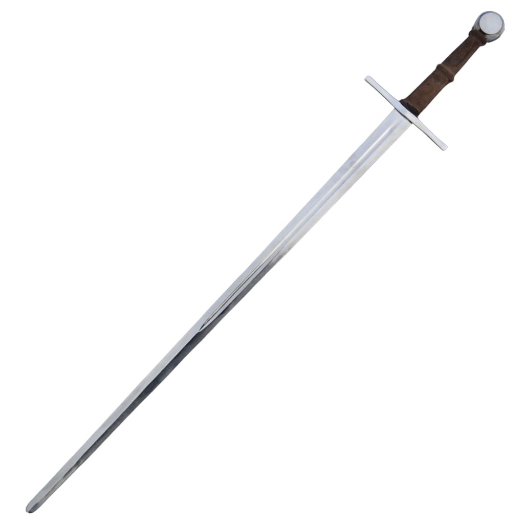 JEDEN A PŮLRUČNÍ MEČ - MELIADOR. Meč je samozřejmě určen pro historický šerm, 2 roky záruka a možný i pozáruční servis. Oceníte na něm zejména jeho nízkou váhu. Záštita zavařená mosazí, aby se samovolně neuvolňovala. Kvalitní kožená omotávka.