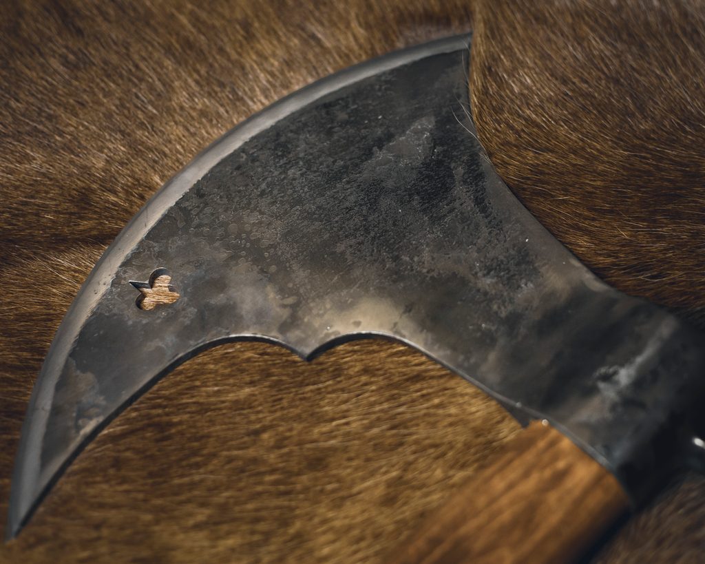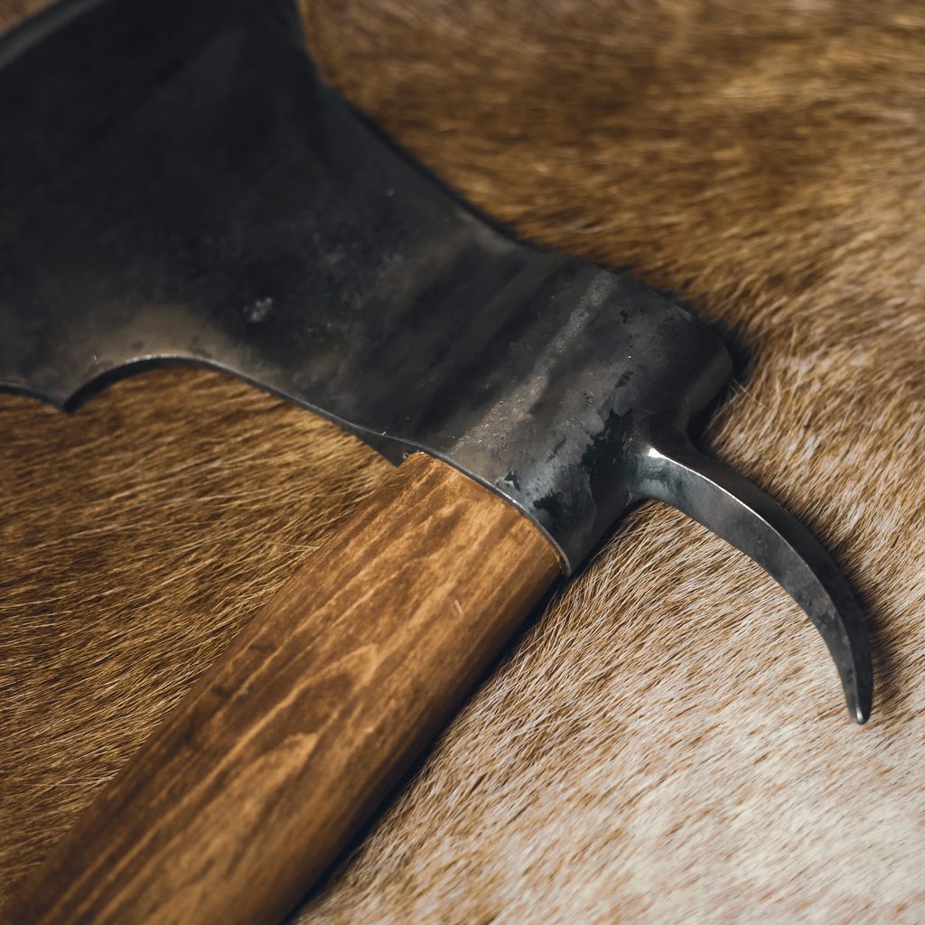 Replika evropské bojové sekery typově spadající do 13. - 15. století. Vzhledem k trnu z druhé strany, který může být v bitvě nebezpečný ji prodáváme jako dekorační repliku. Celková délka: 80 cm, délka ostří: 29 cm. Sekera je ostrá.