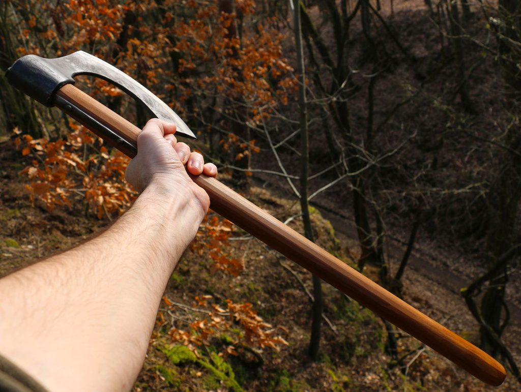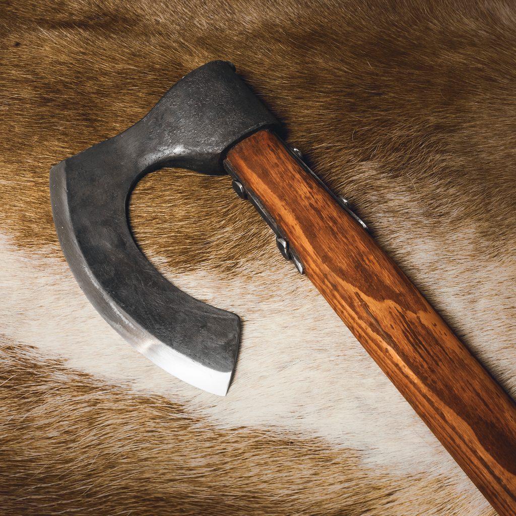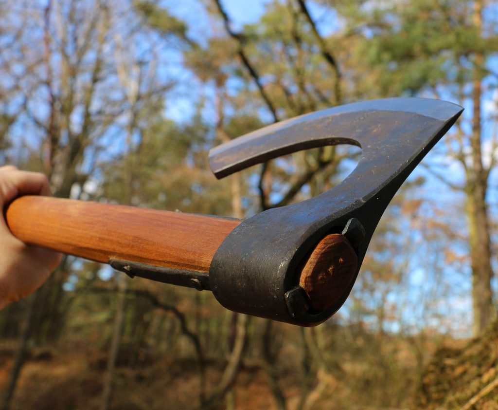 Kovaná sekera - bradatice. Dodáváme buď ostrou jako dekorativní repliku nebo tupou k boji.