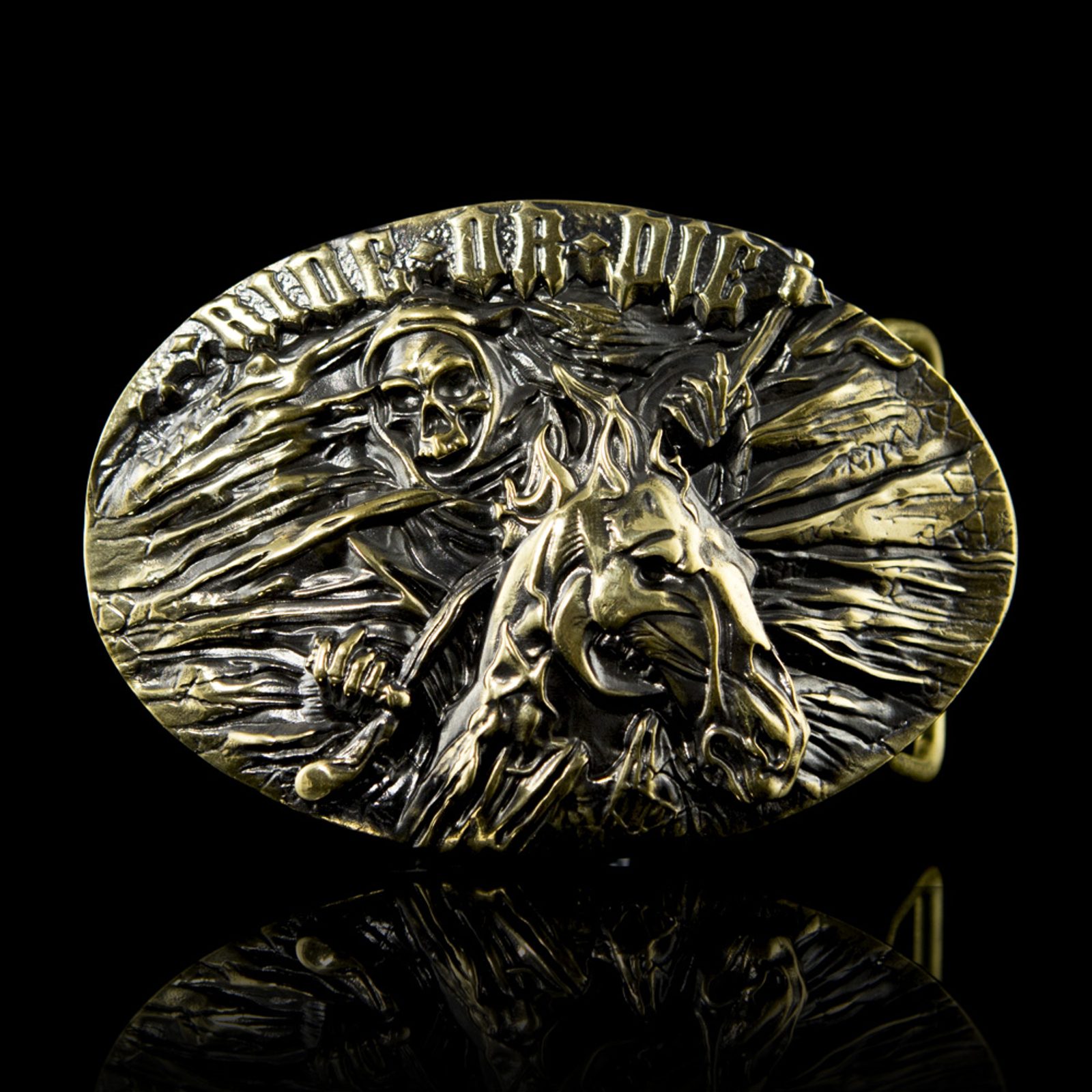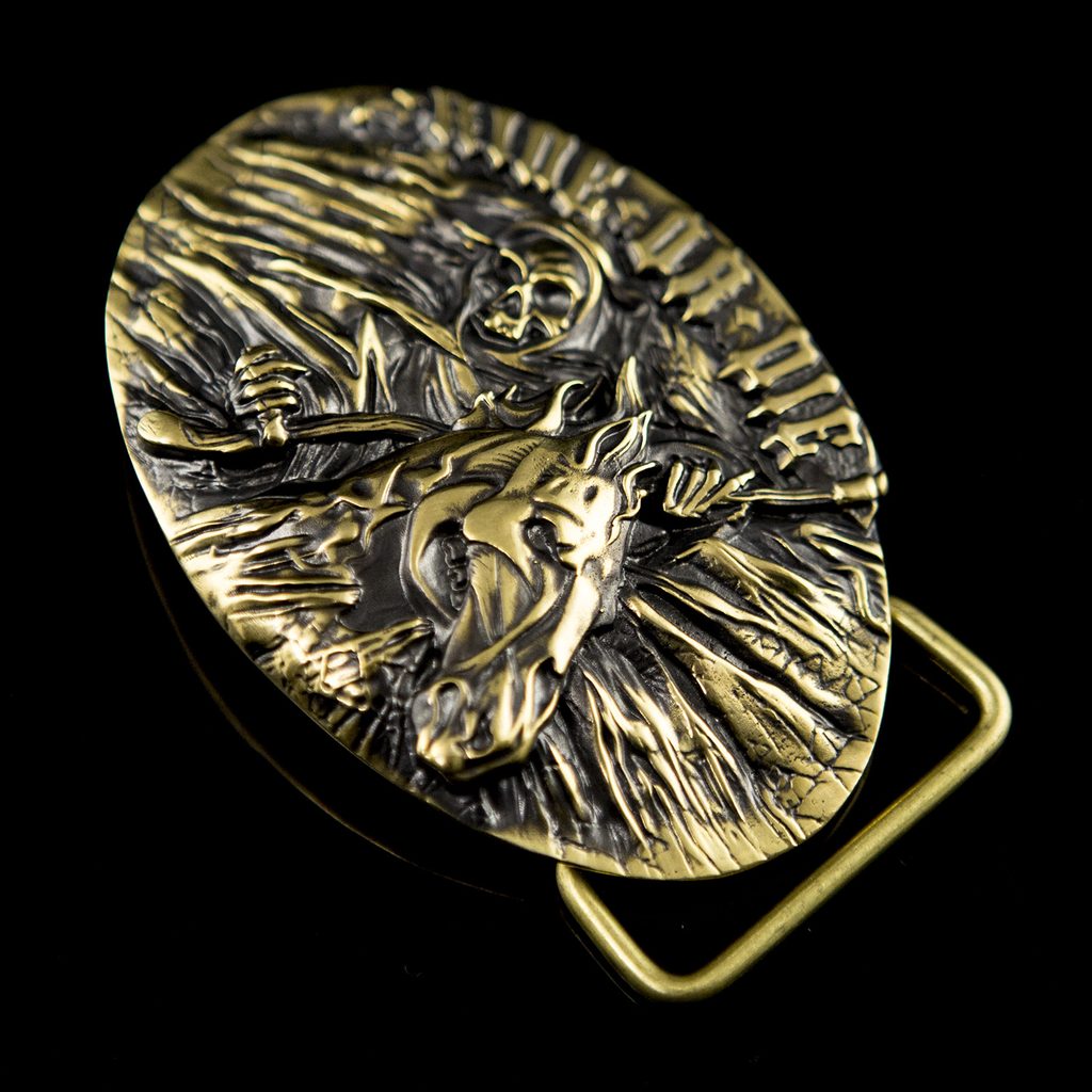 Přezka je odlitá z mosazi. Po odlití je každá přezka ručně zpracována. Následně je povrch upraven patinou a znovu vyleštěn. Součástí balení je také mosazný rámeček ve dvou volitelných velikostech (38 mm a 45 mm) pro pozdější připevnění k opasku.