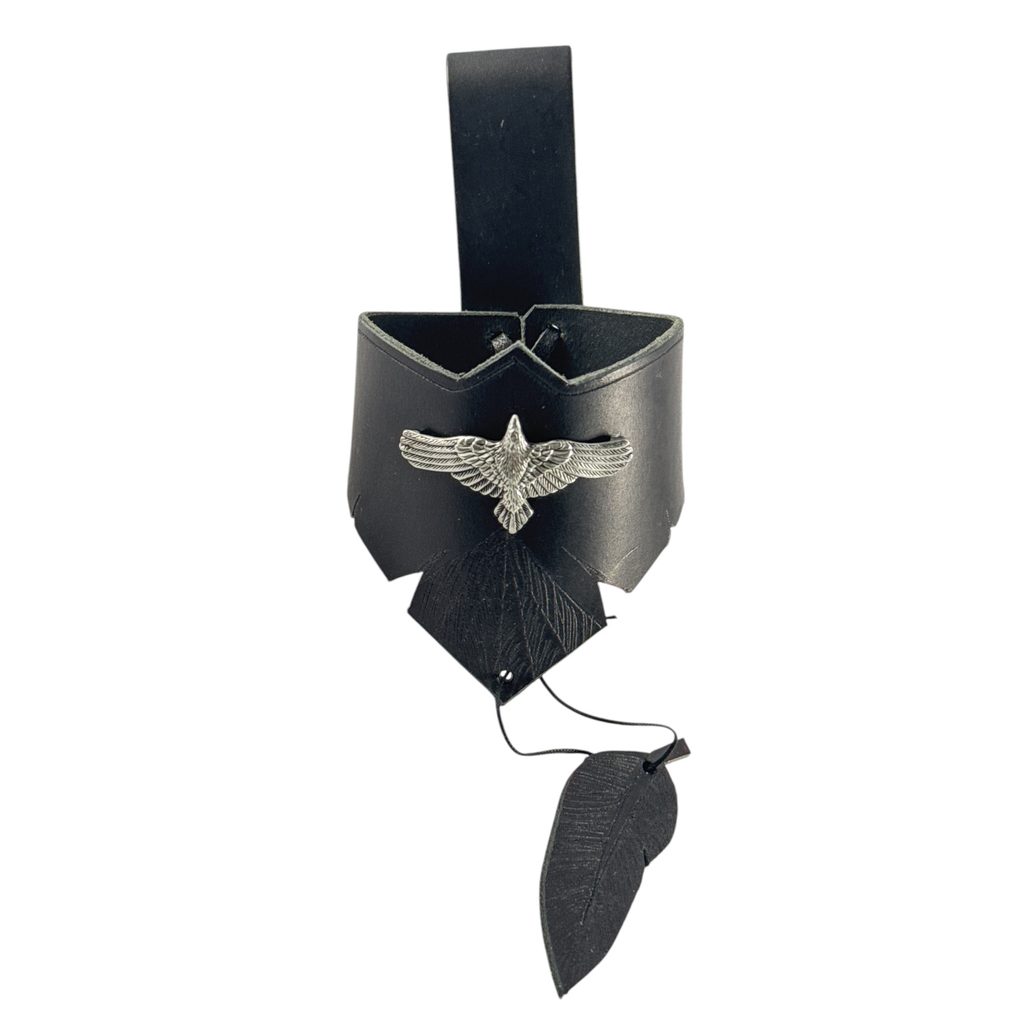 Roh na pití CORVUS a kožený držák. Roh je vyleštěn a opatřen vrstvou potravinářského laku.